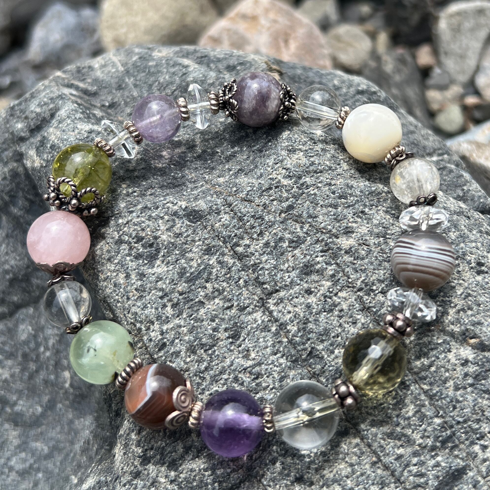 水晶8ミリ2個、10ミリ1個、ラベンダーアメジスト8ミリ、アメジスト10ミリ、