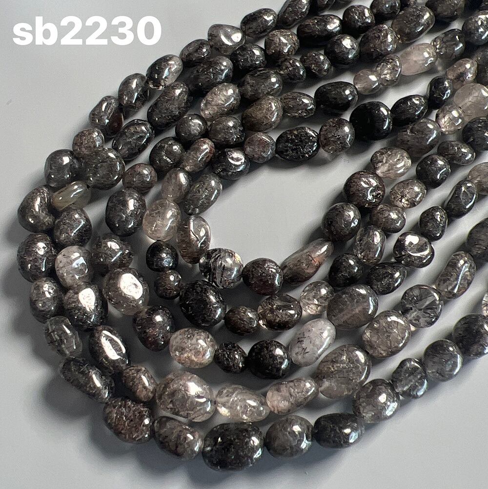ブラックガーデン&ルチルクォーツ タンブル ビーズ 連 sb2230