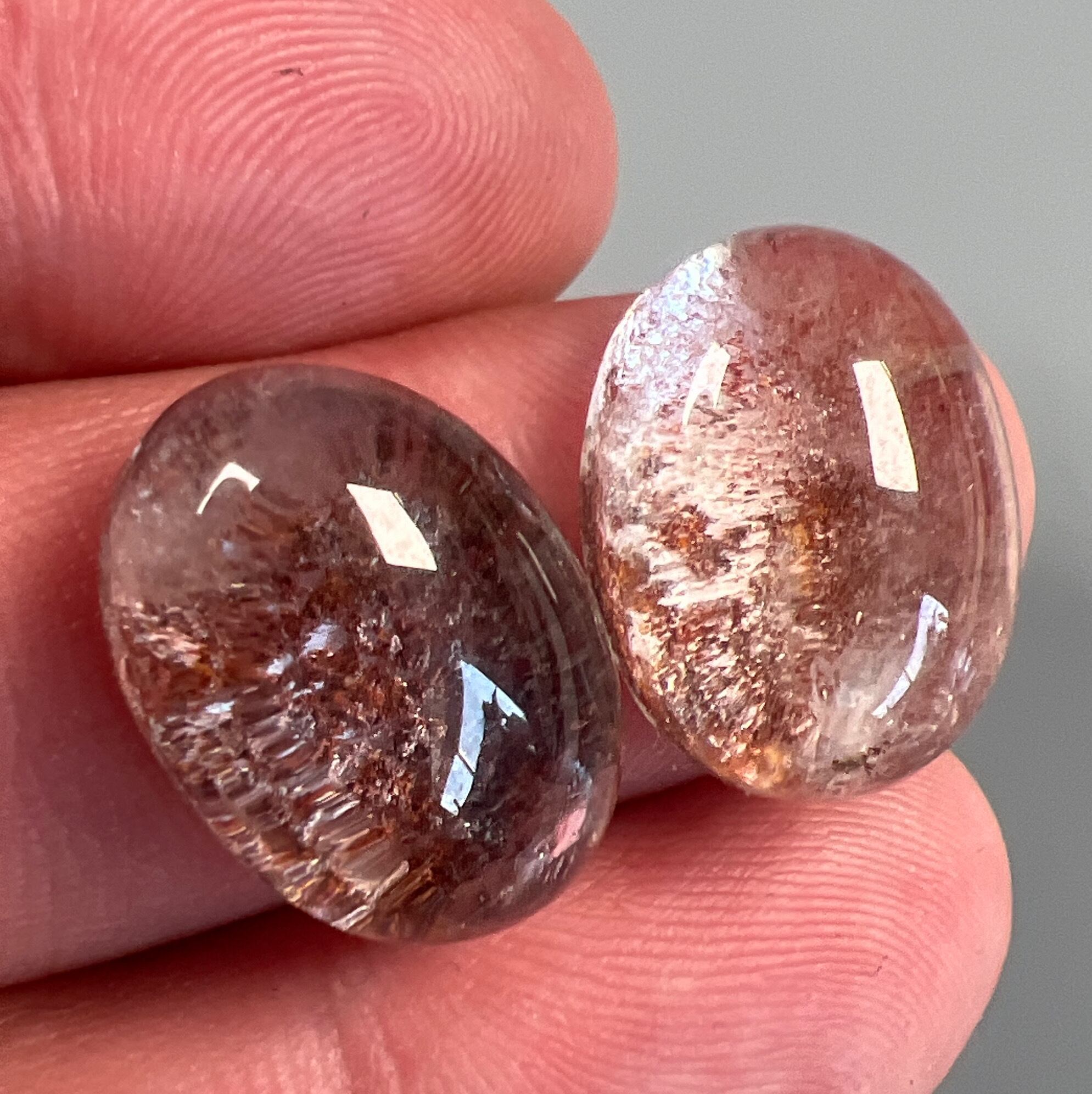 赤茶の内包物のガーデンクォーツ カボション 17ミリペア nl5452