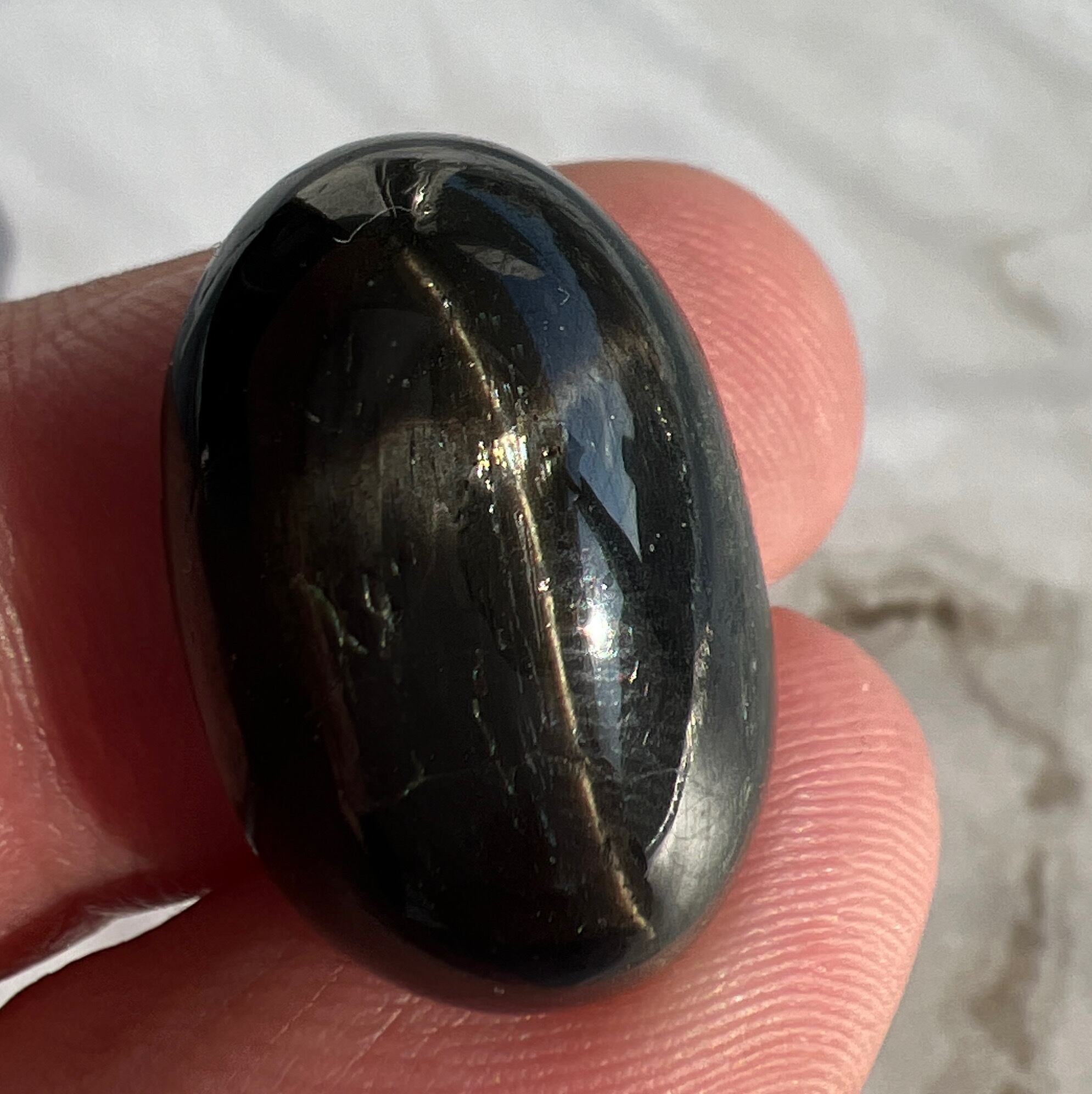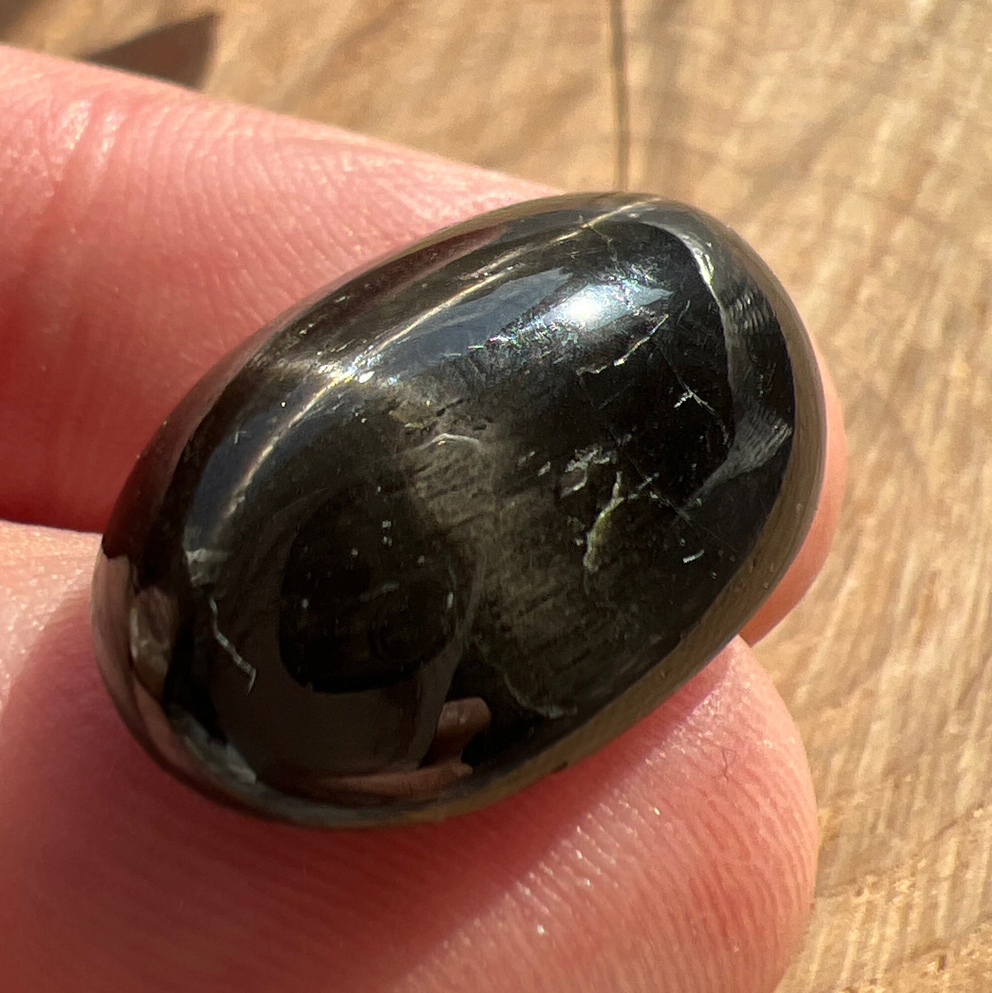 十字のスターが出るブラックスター(ダイオプサイト)のルースです。