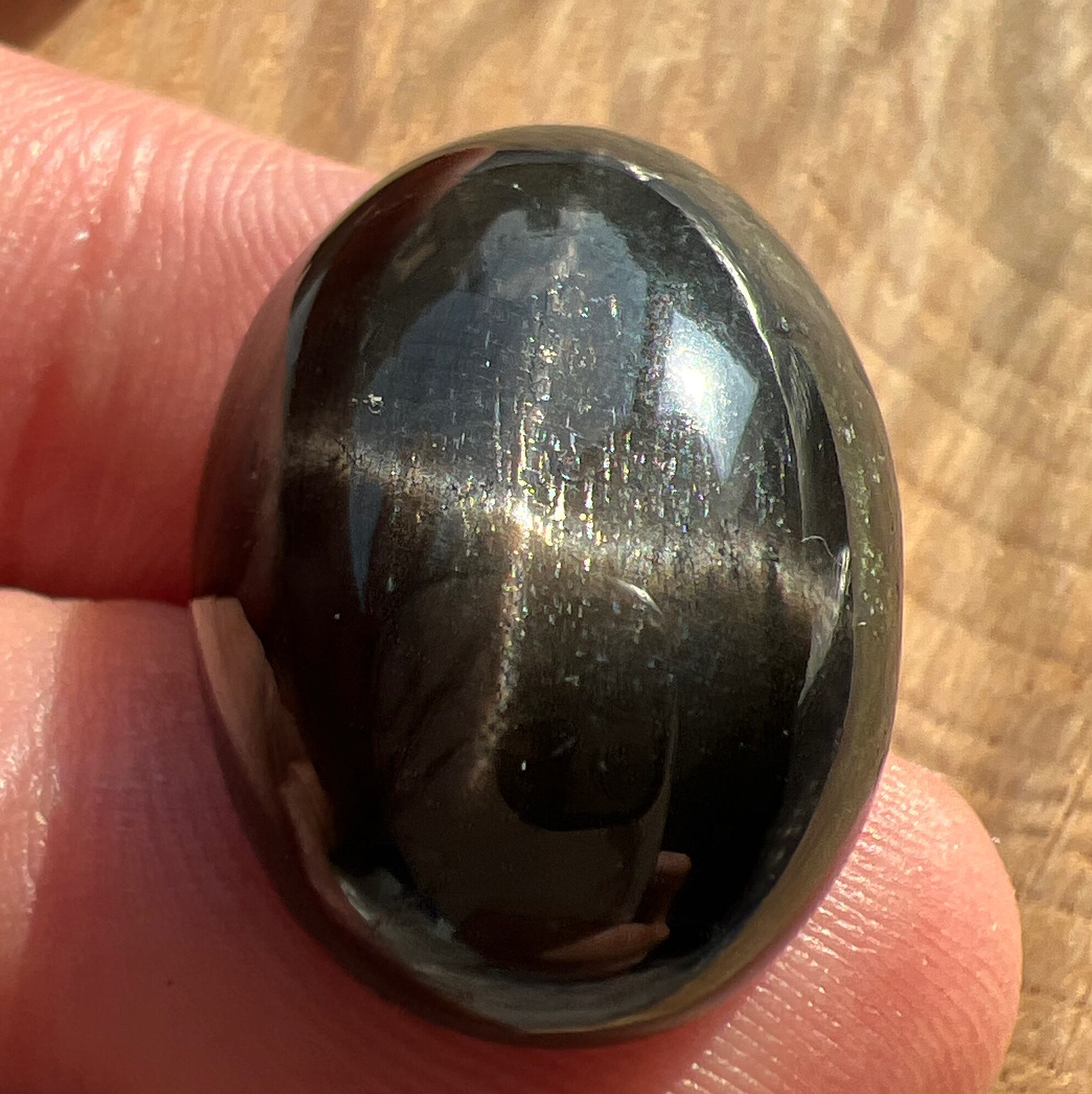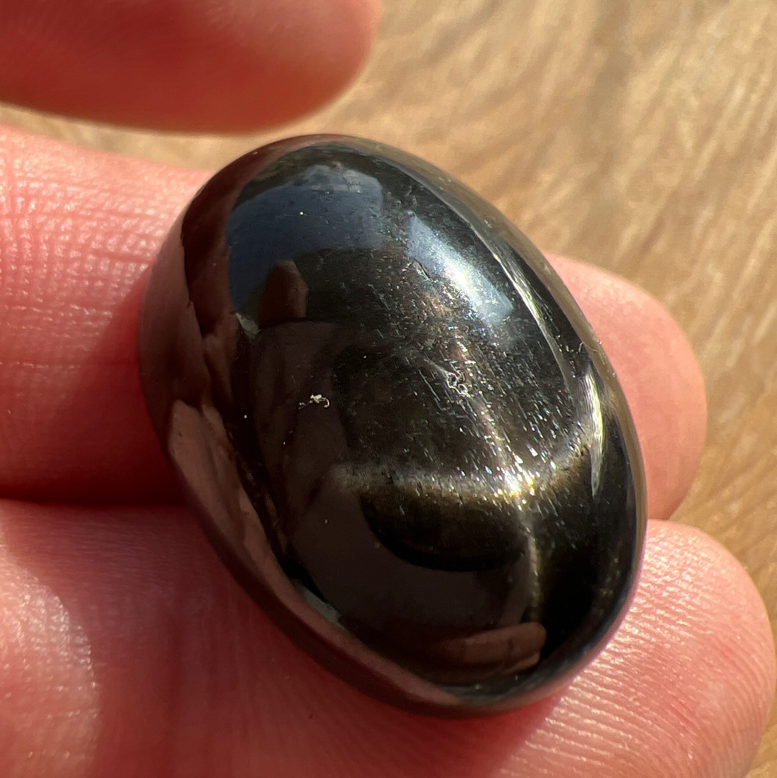 十字のスターが出るブラックスター(ダイオプサイト)のルースです。