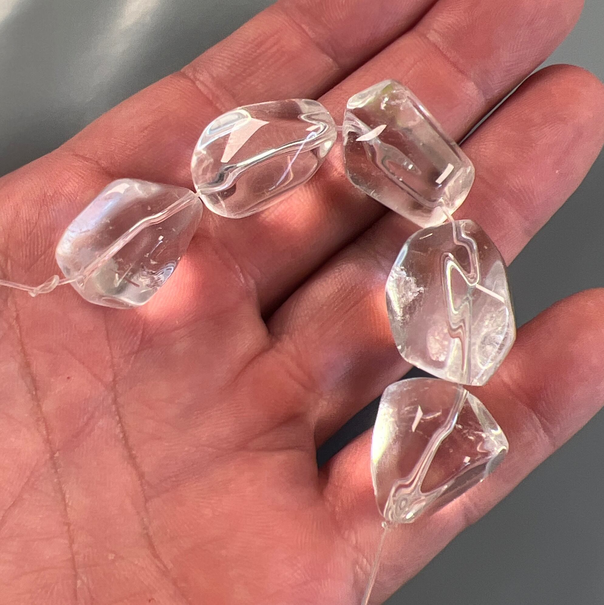 透明度抜群 高品質クリスタルクォーツ 大ぶりタンブルビーズ 1/4連 sb2254