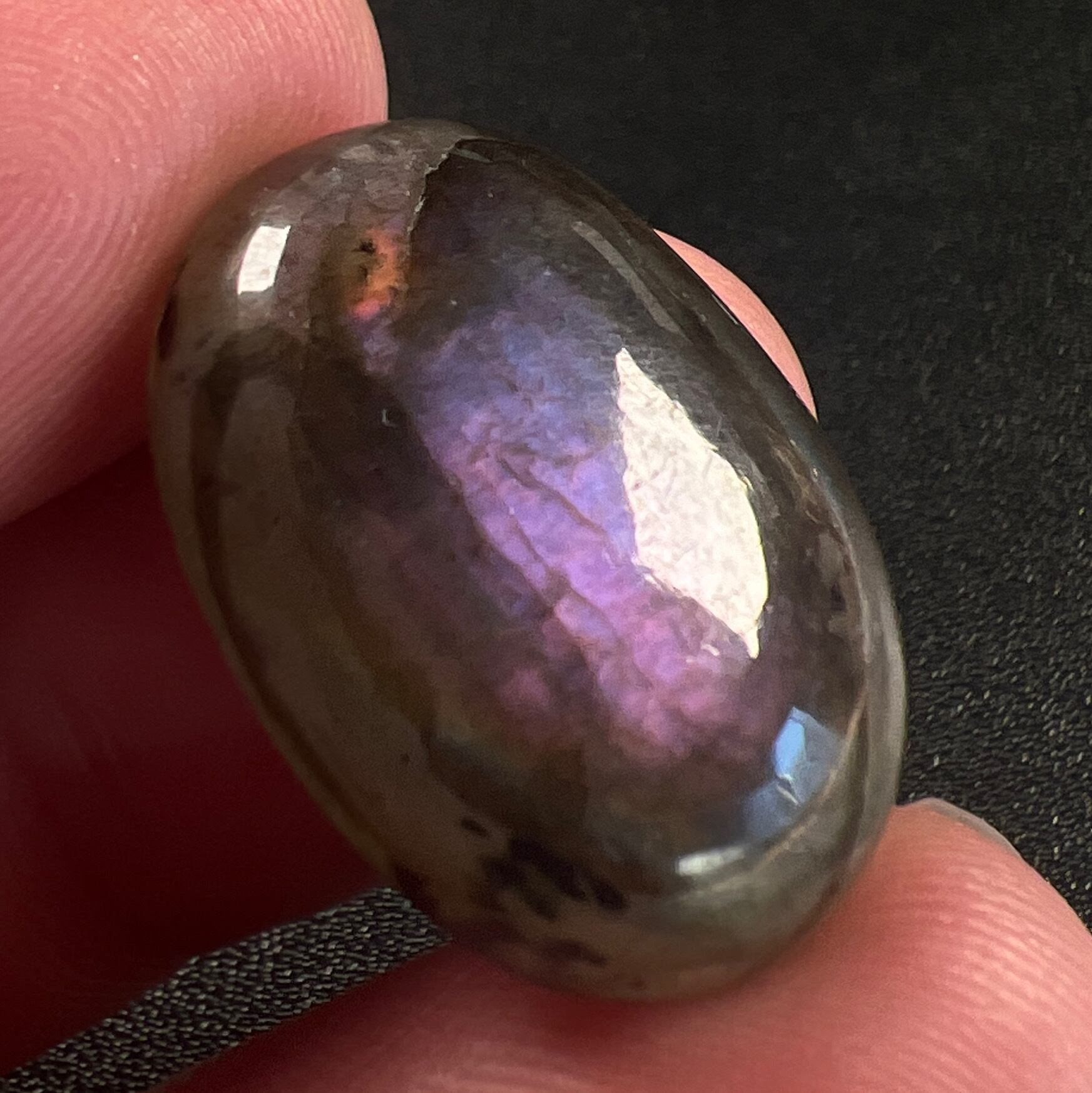 淡いピンクパープルのシラーが確認しやすい上質のラブラドライトです。