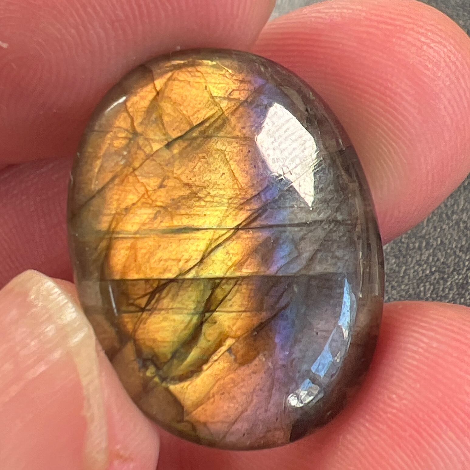 淡いピンクパープルとゴールドの見られる上質のラブラドライトです。