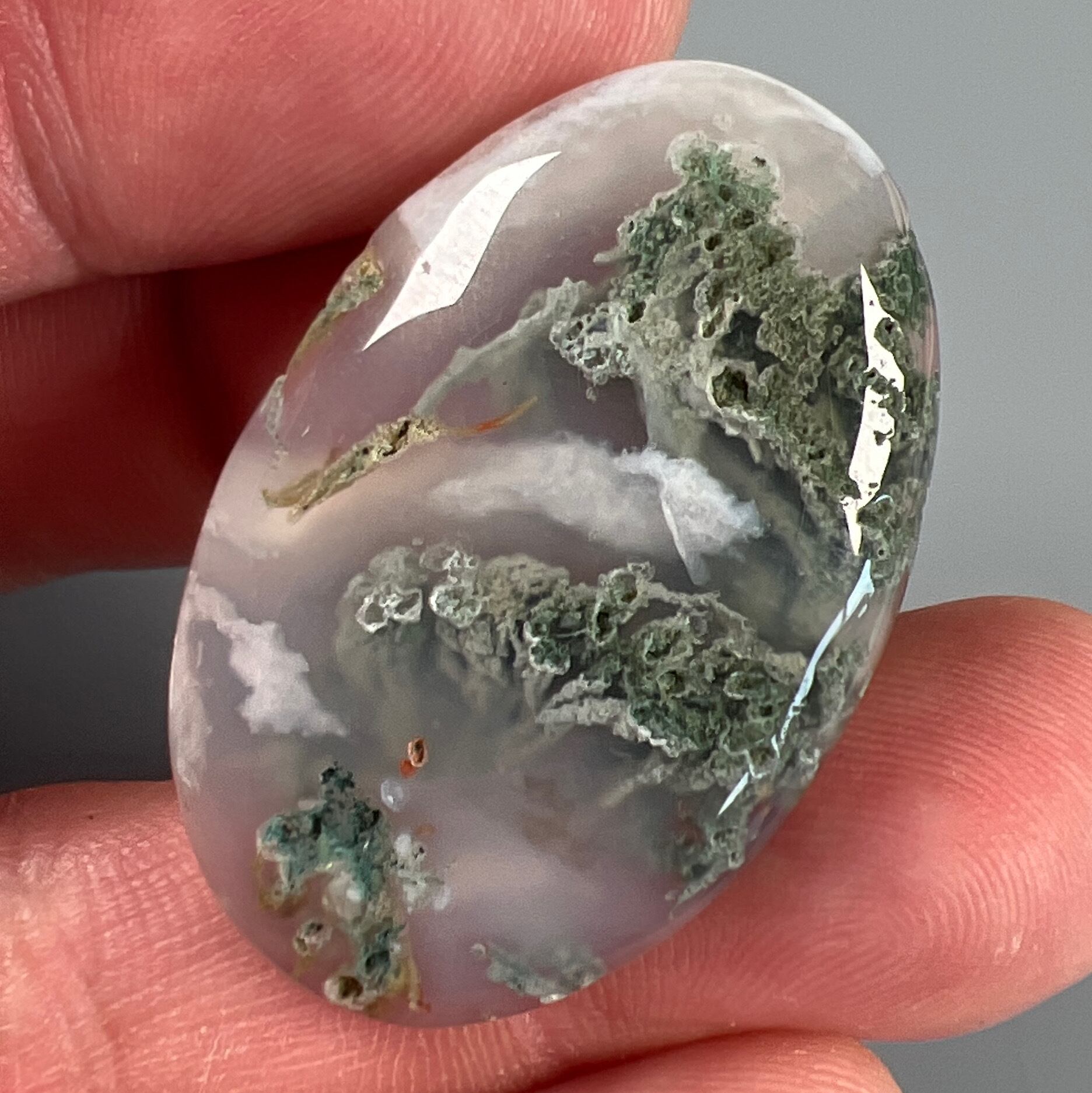 光の加減で、色んな表情を見せてくれるモスアゲートです。