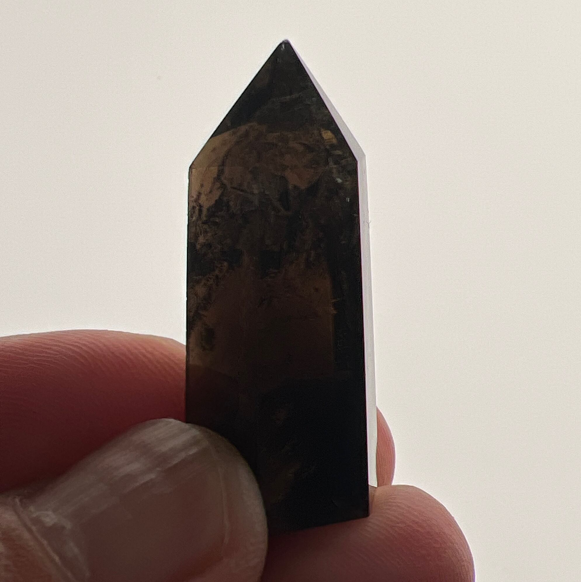 小さいですが、一見モリオンのように濃い黒の色合いです。