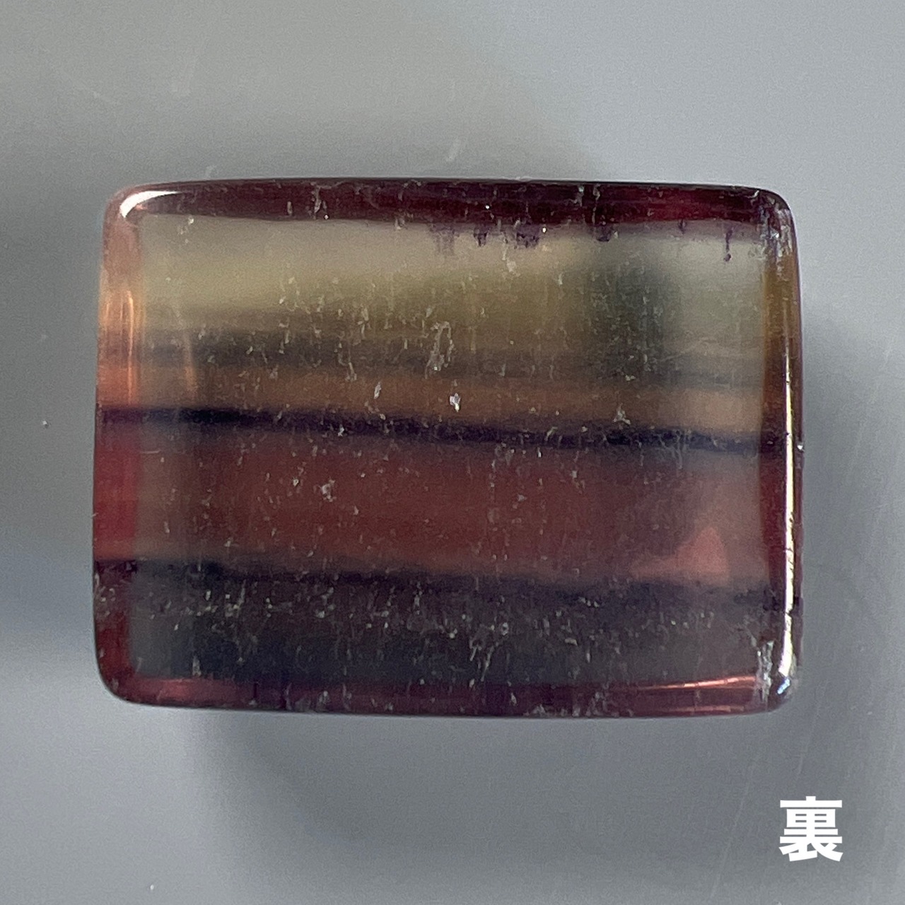 パープル、イエロー、グリーンのマルチグラデーションのフローライトスクエア型ルース。