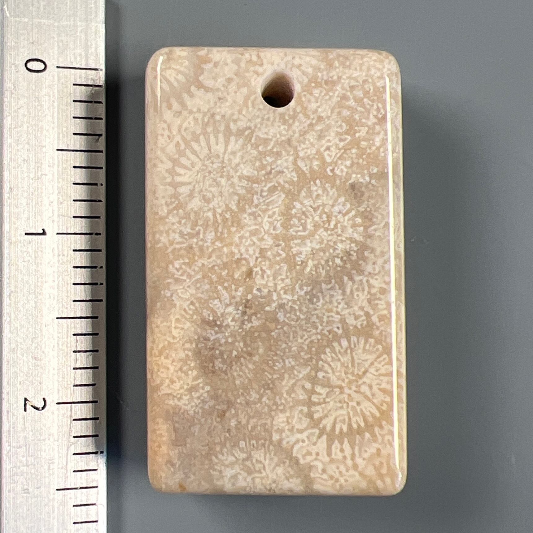 フォッシルコーラルの穴あきレクタグル型ルースをご紹介します。