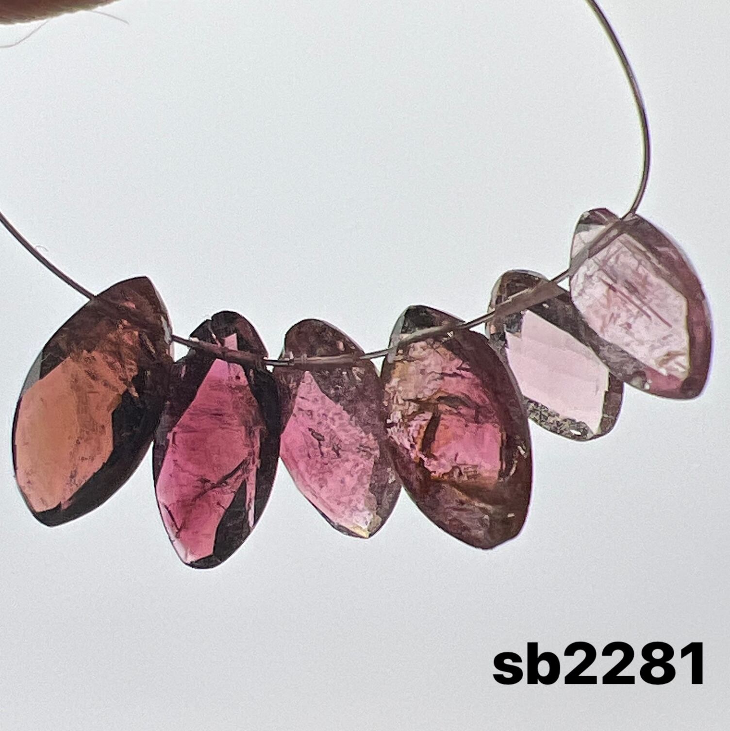 ピンクトルマリン アーモンド型 宝飾カットビーズ 3ペア sb2281