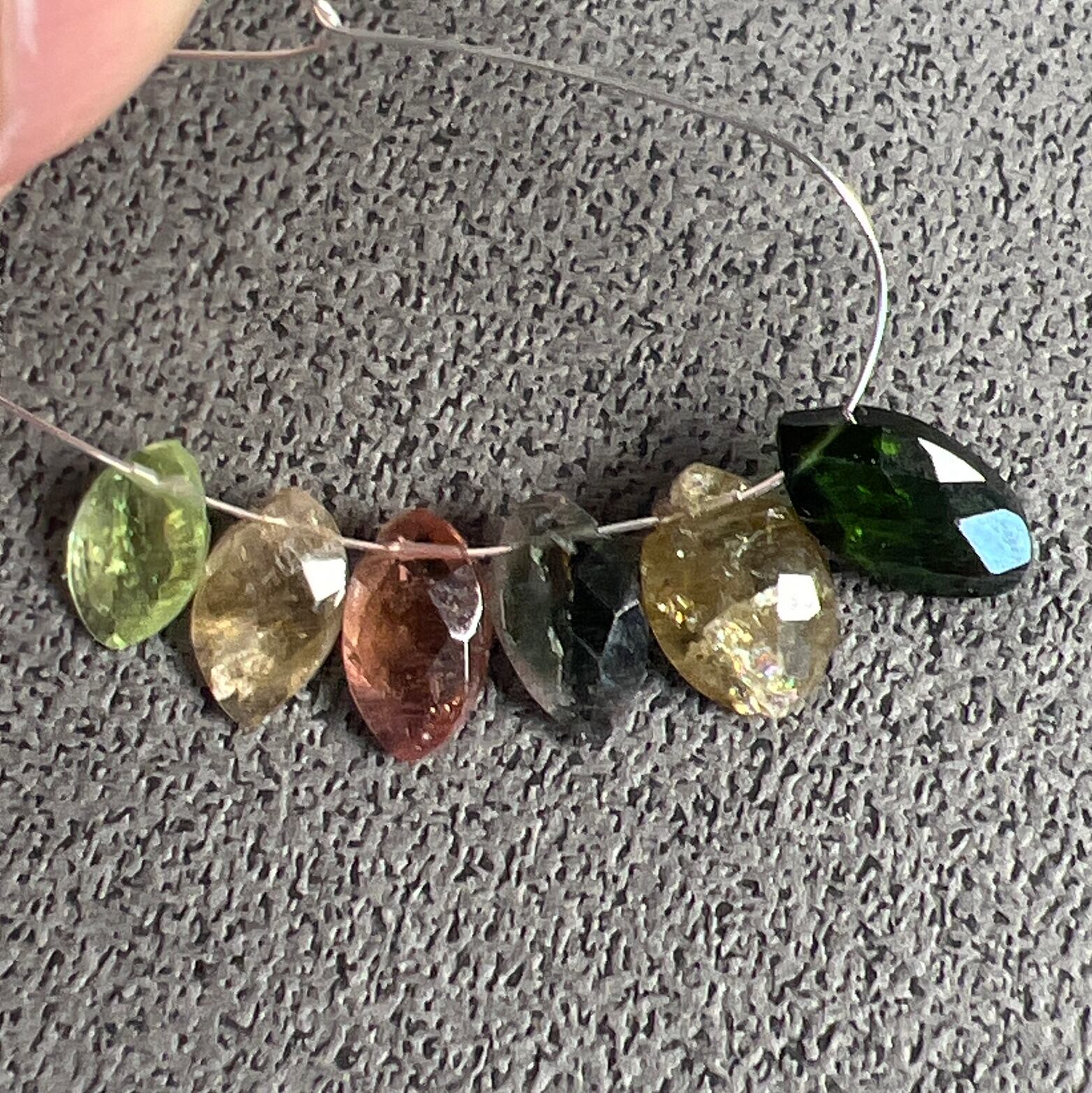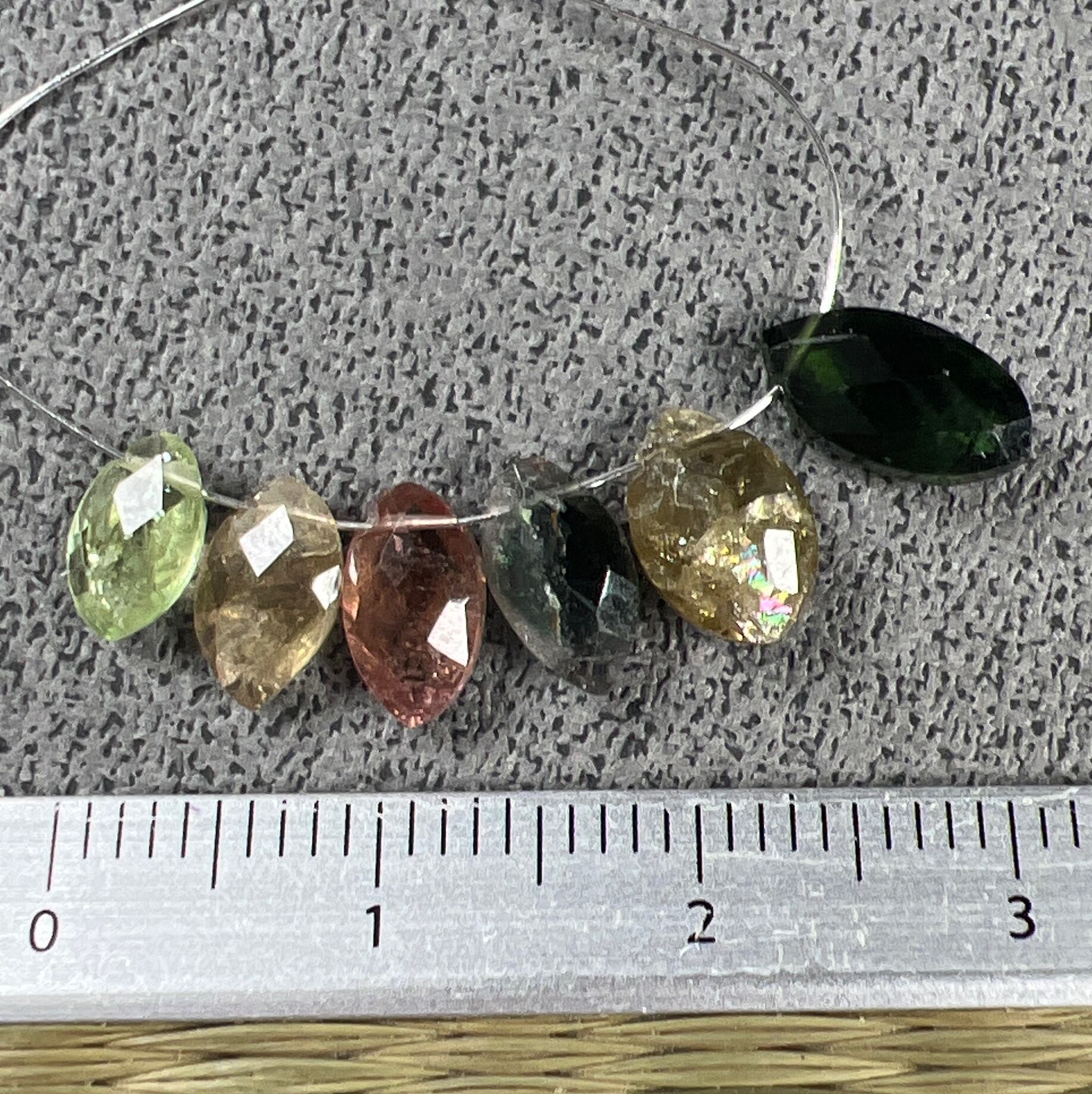 マルチカラー トルマリン アーモンド型 宝飾カットビーズ 6P sb2284