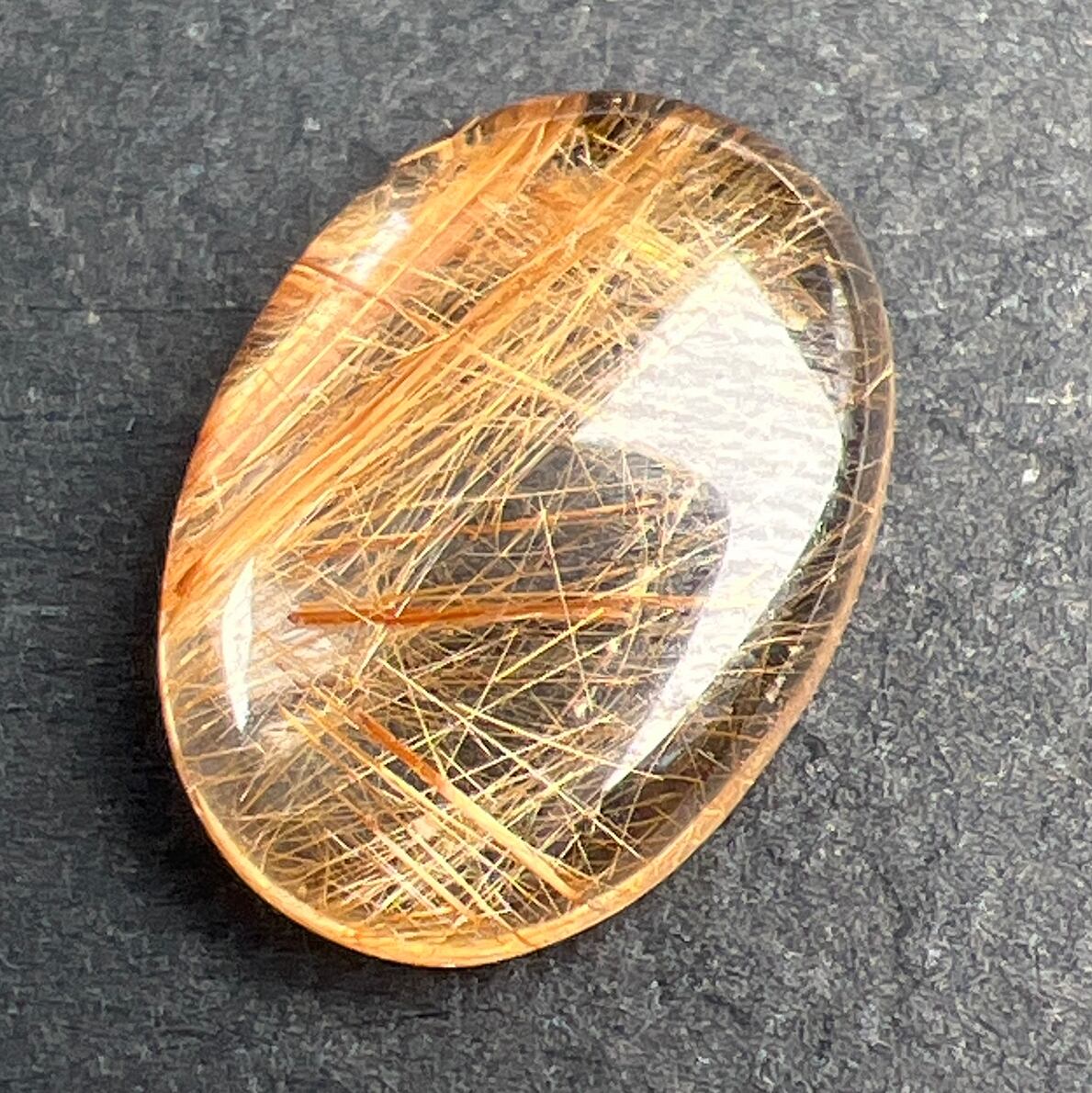 ブロンズ色の針が美しい質の良いルチルクォーツのカボションルースです。