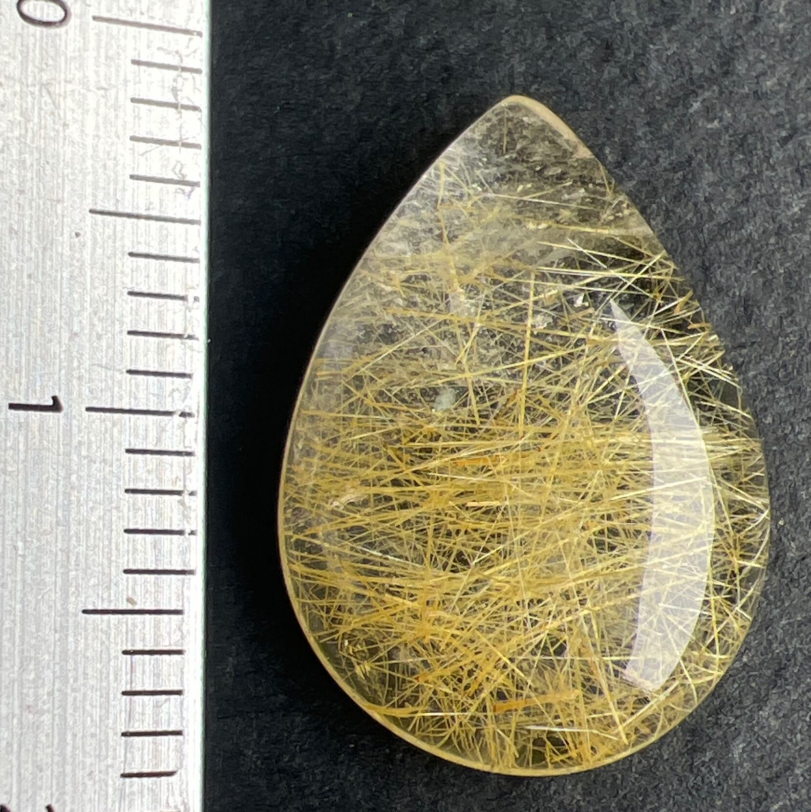 無数のゴールドの針が見られるルチルクォーツのティアドロップ型ルースです。