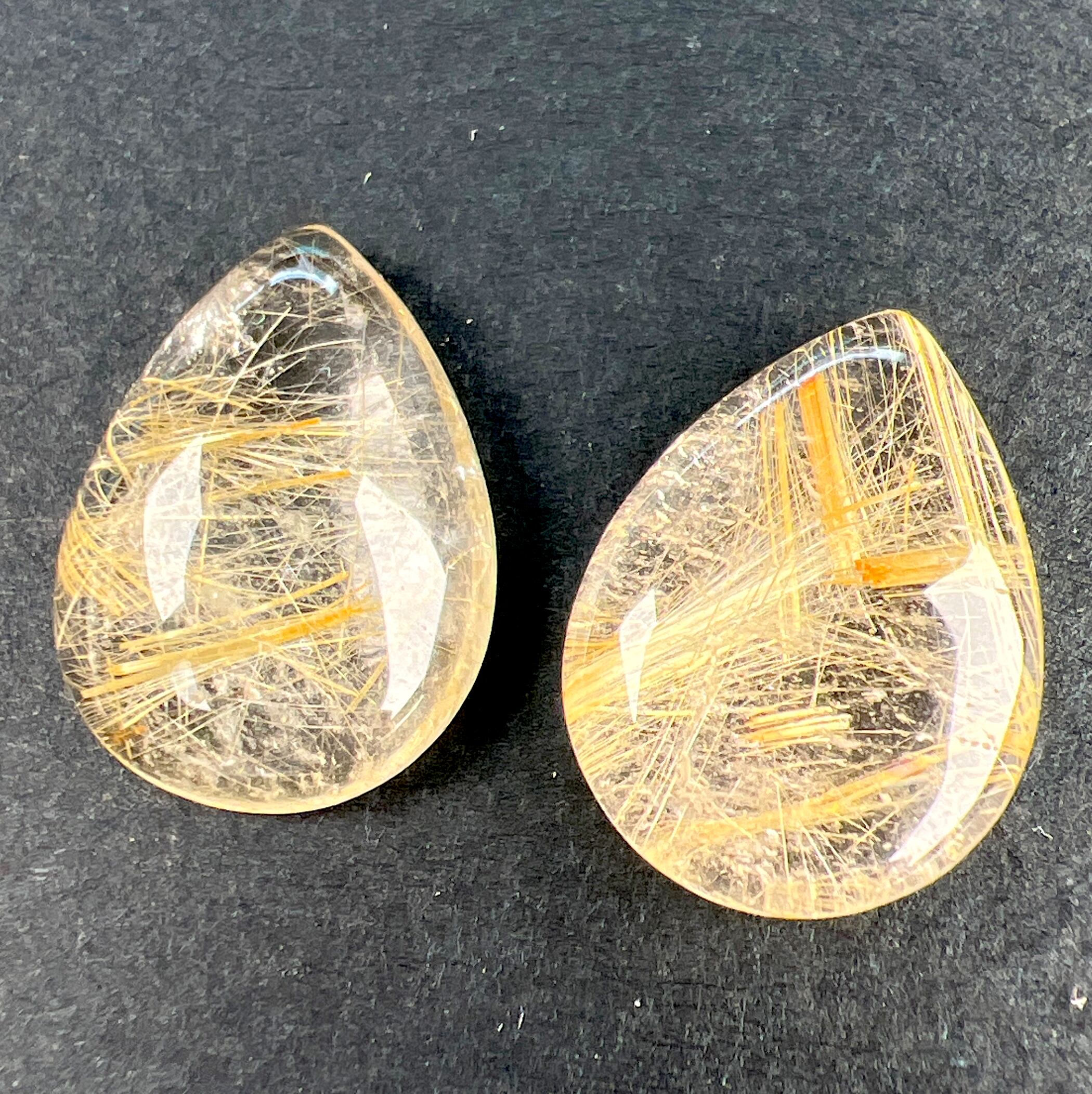 品質の良いルチルクォーツ ティアドロップ型ルース ペア