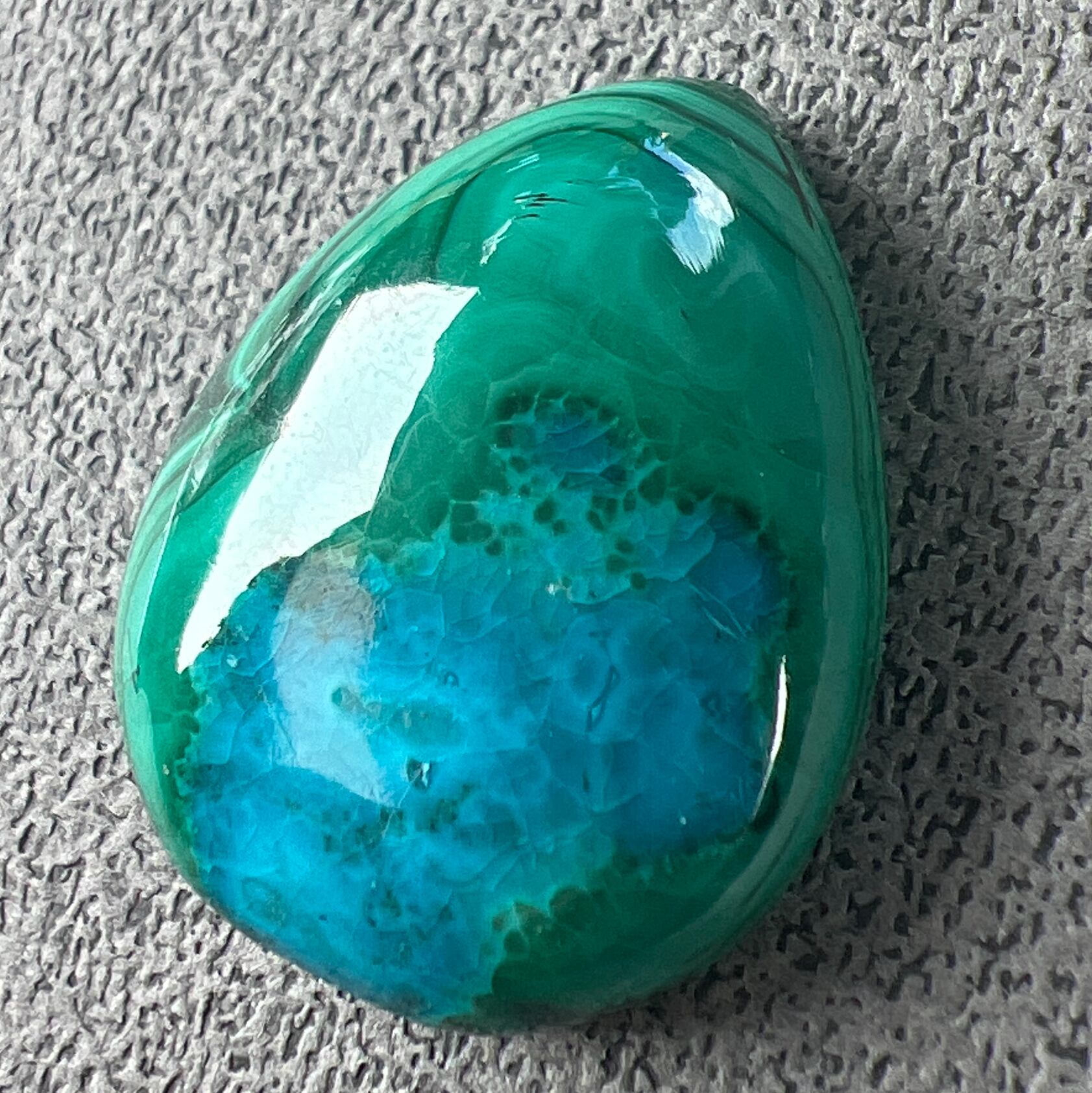 海の青クリソコラと森の緑のようなマラカイトが融合したクリソマラカイト。