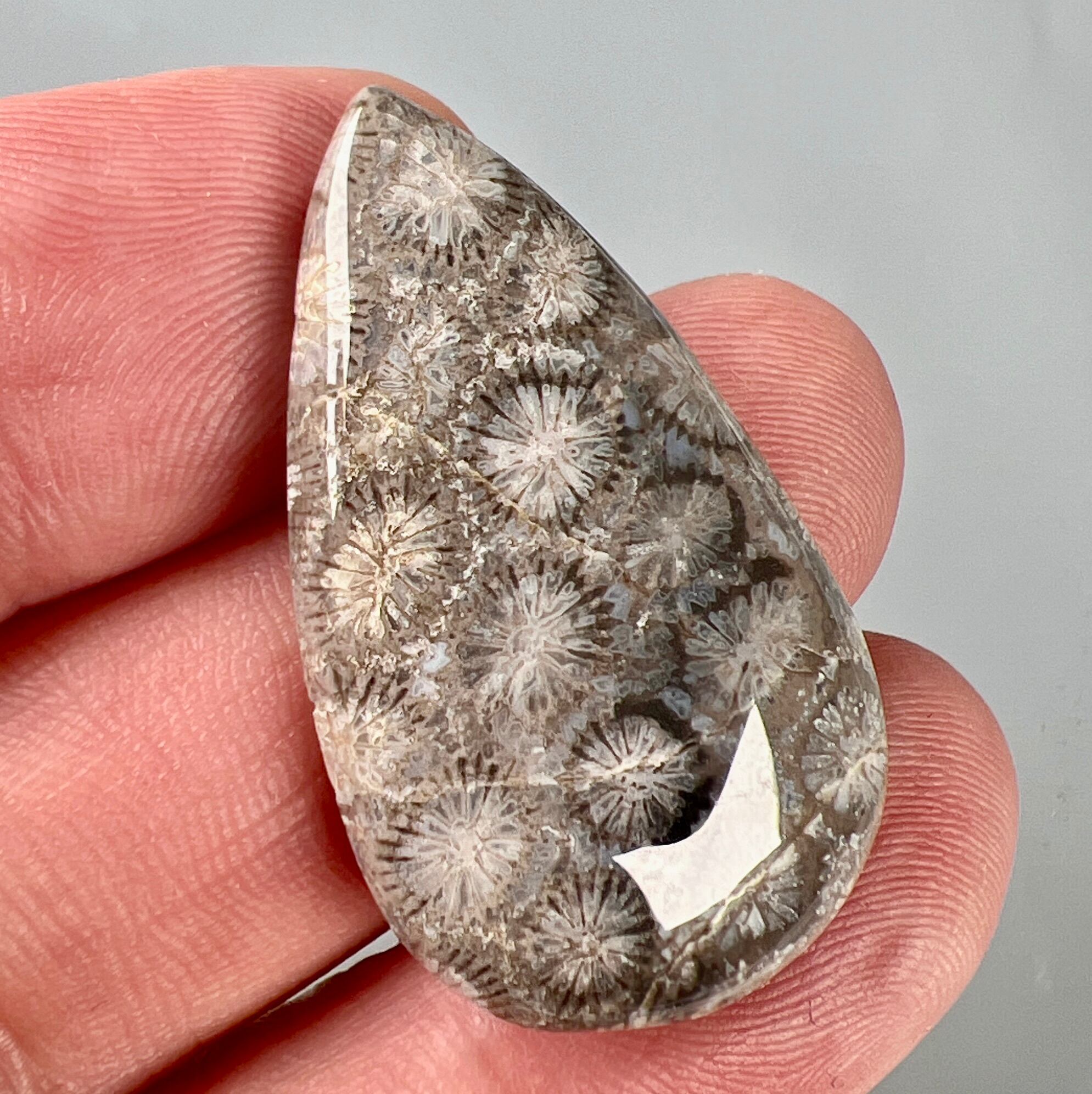 表面に光沢があり、高品質のフォッシルコーラルルースです。