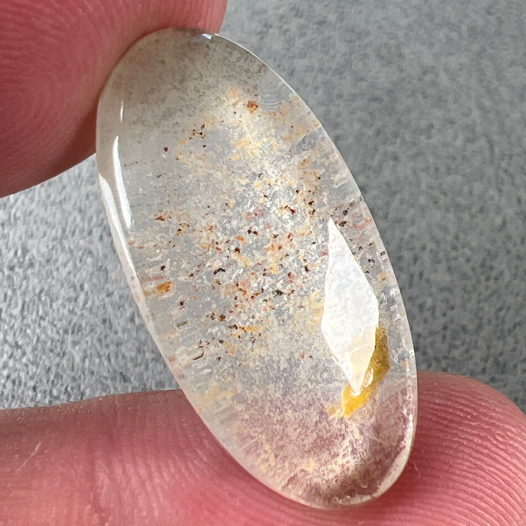 レピドクロサイトやゲーサイトなどの内包物が入ったエレスチャルクォーツです。