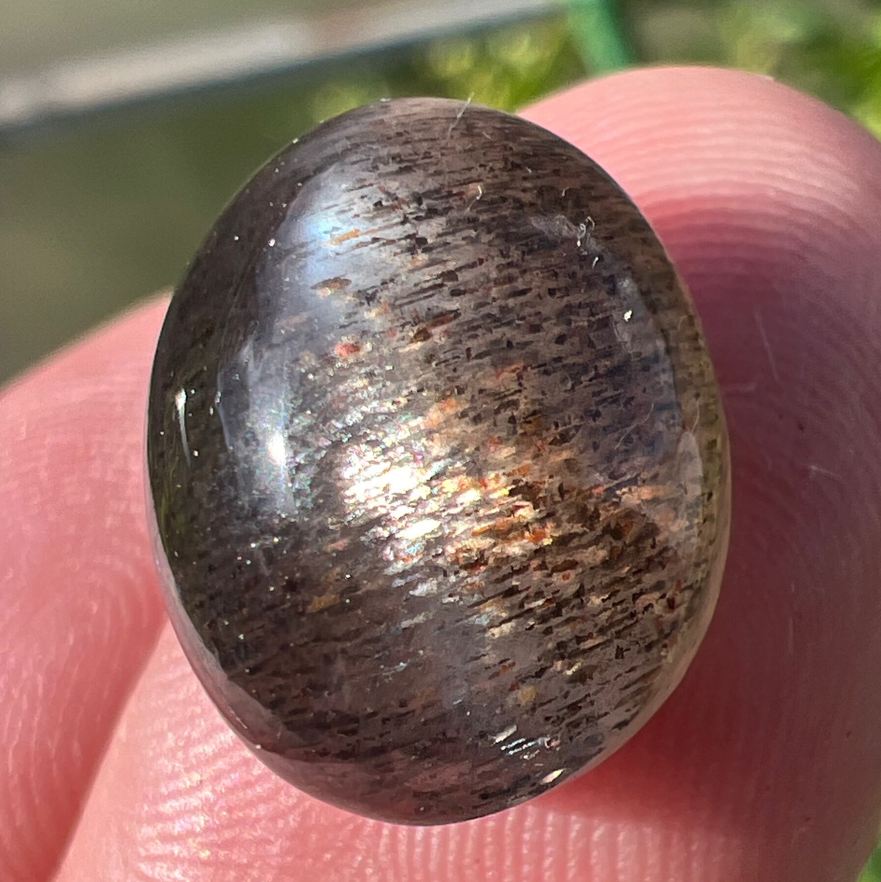 黒いながらもサンストーン特有のアベンチュレッセンス、