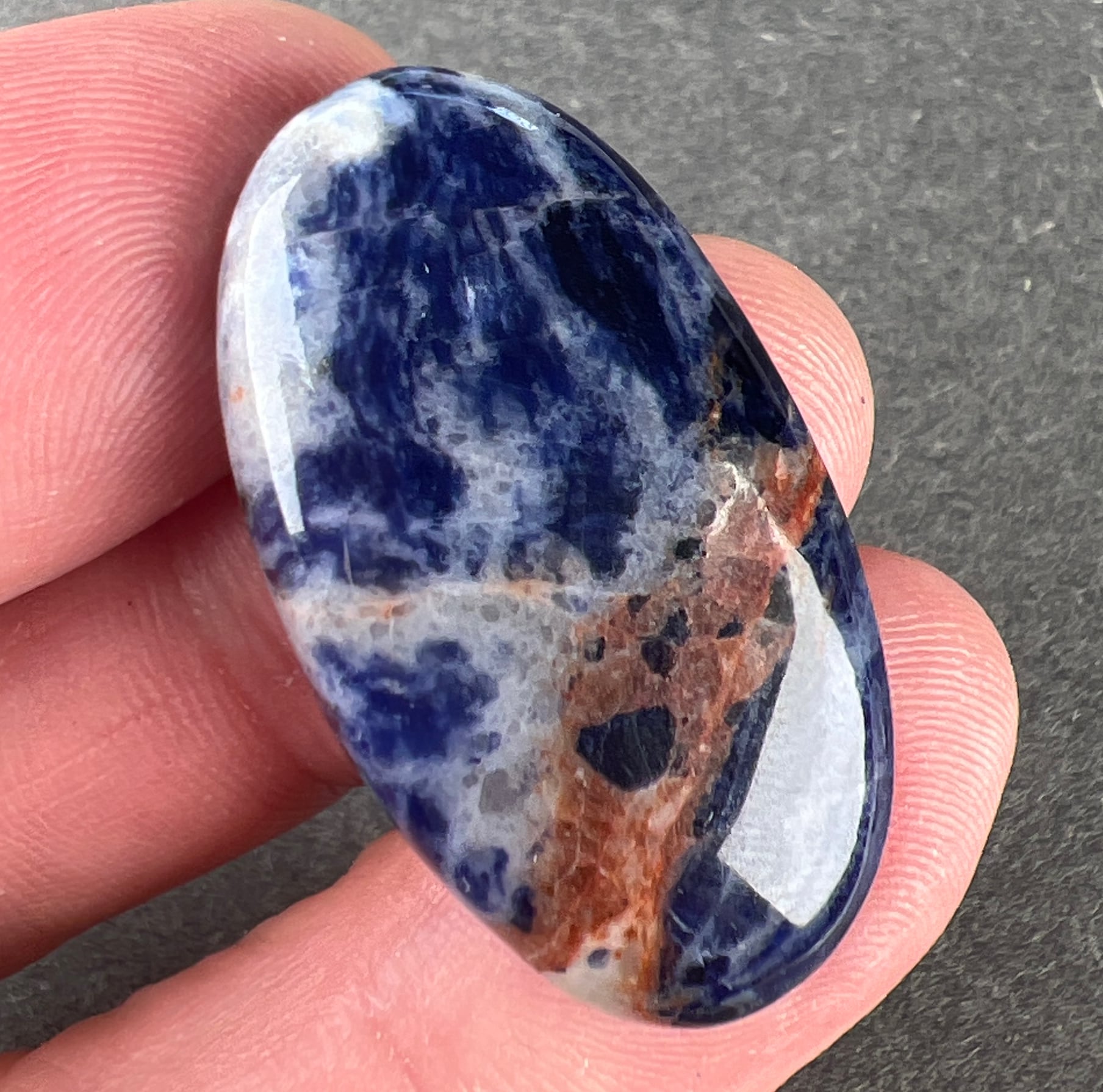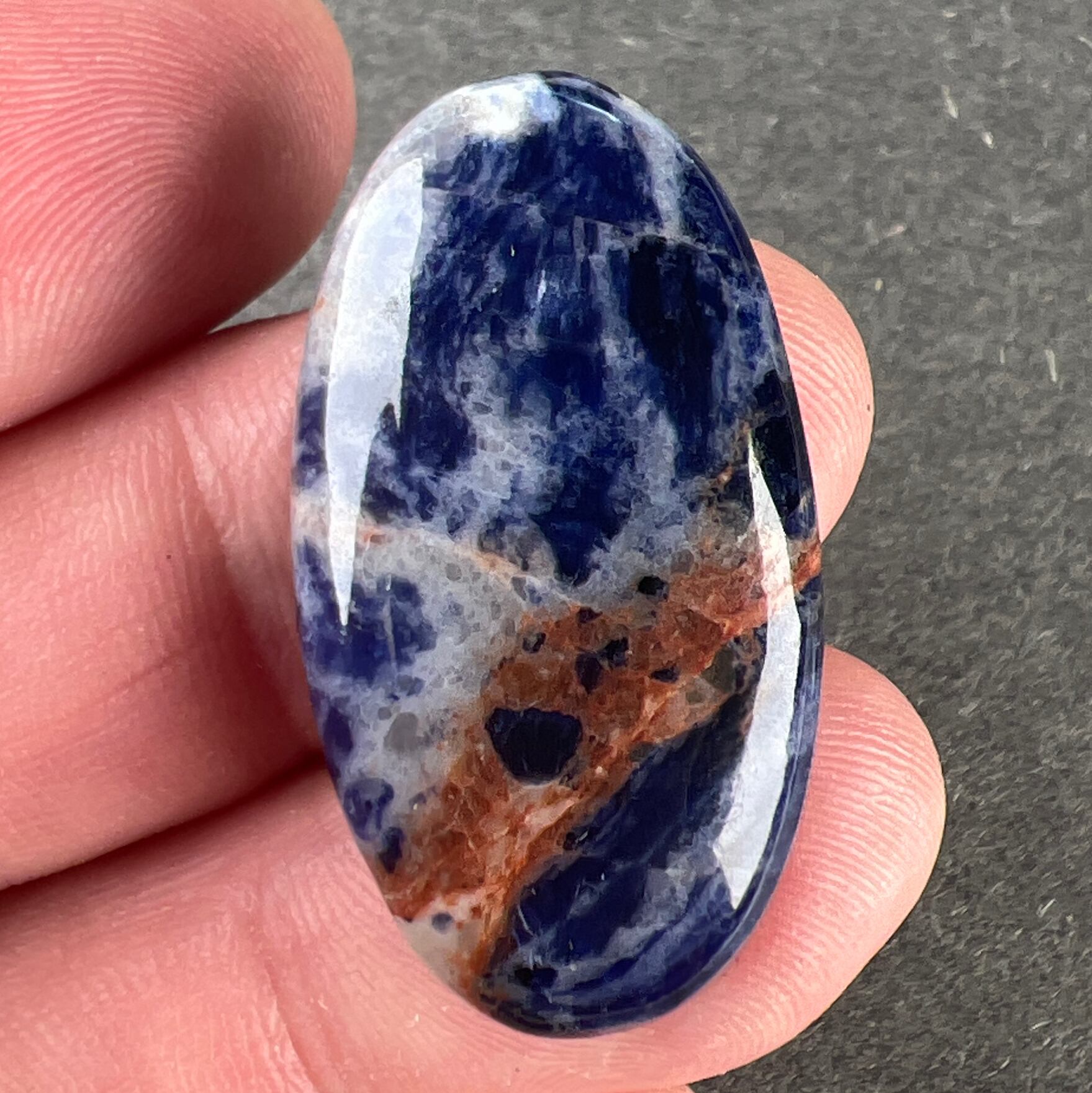 赤い大地、青い空、印象的な絵画のようなルースです。