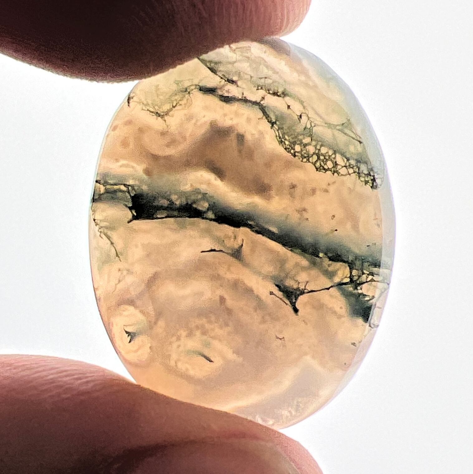 光の加減で、色んな表情を見せてくれるモスアゲートです。