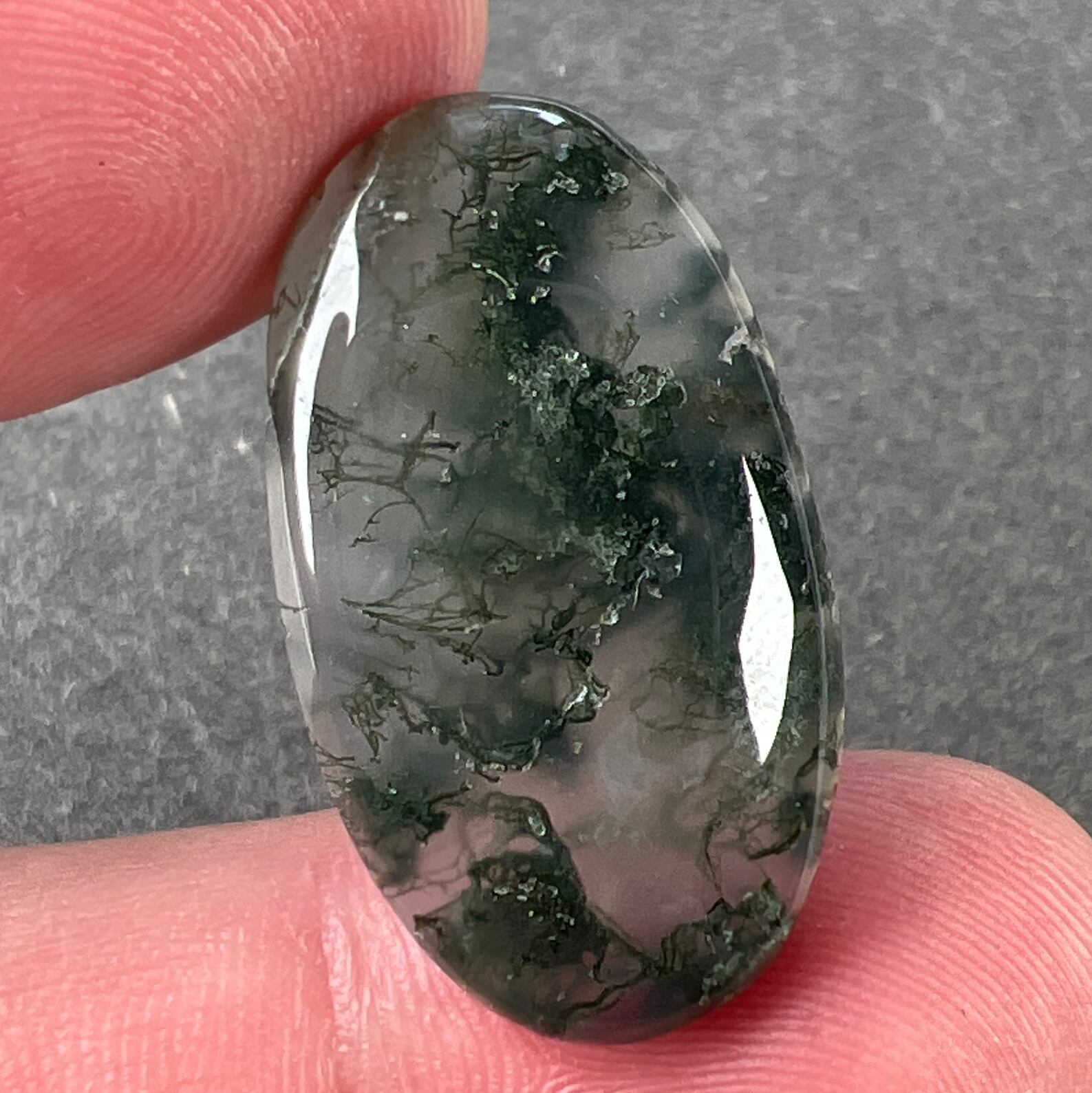 光の加減で、色んな表情を見せてくれるモスアゲートです。