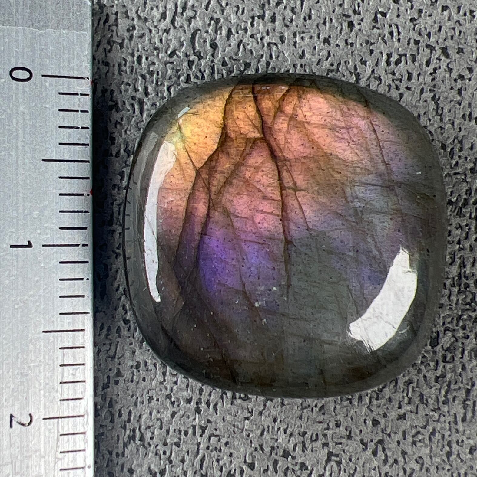 淡いピンクパープルのシラーが確認しやすい上質のラブラドライトです。