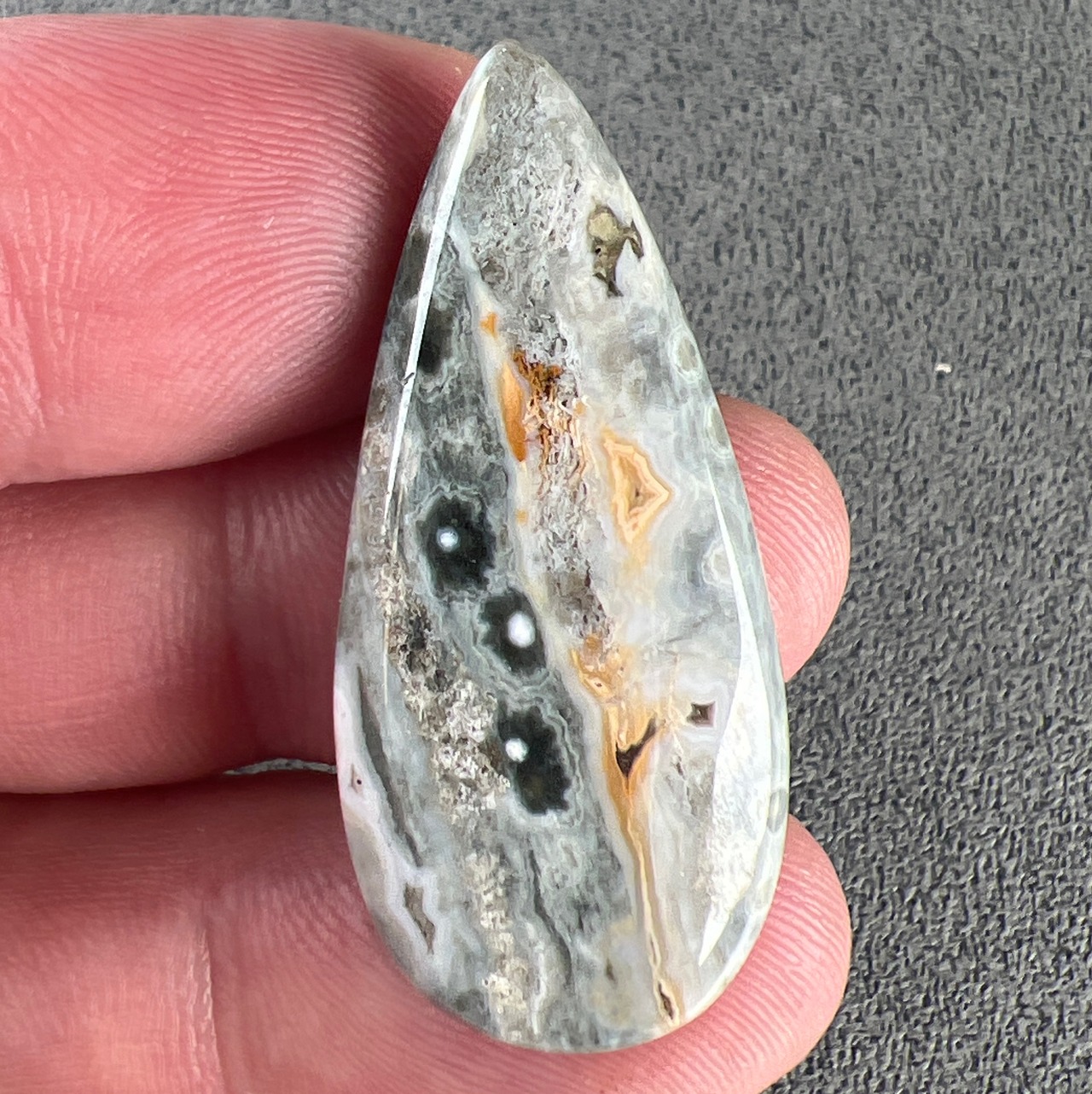 表面に傷や凹みが多いのが多彩な模様を持つオーシャンジャスパー。