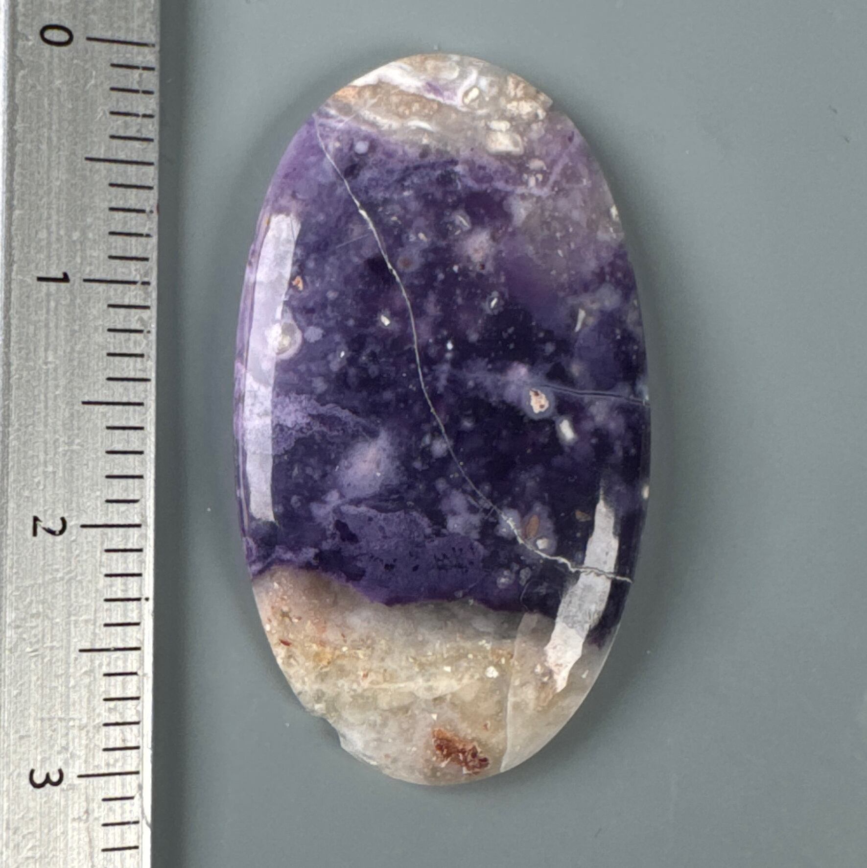 パープルフローライト、ロードライト、カルセドニー、オパールから成り立っており、