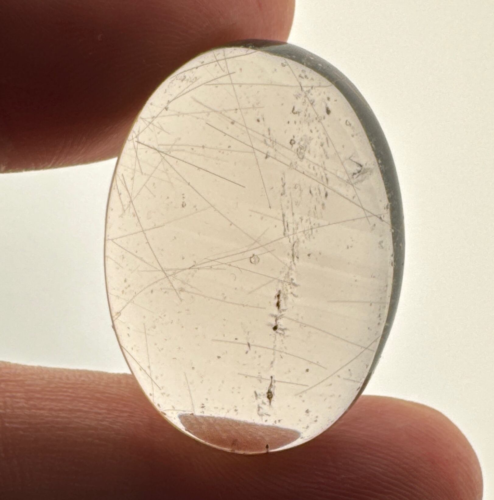 透明感あるスモーキークォーツにうっすらゴールドの針が見られます。