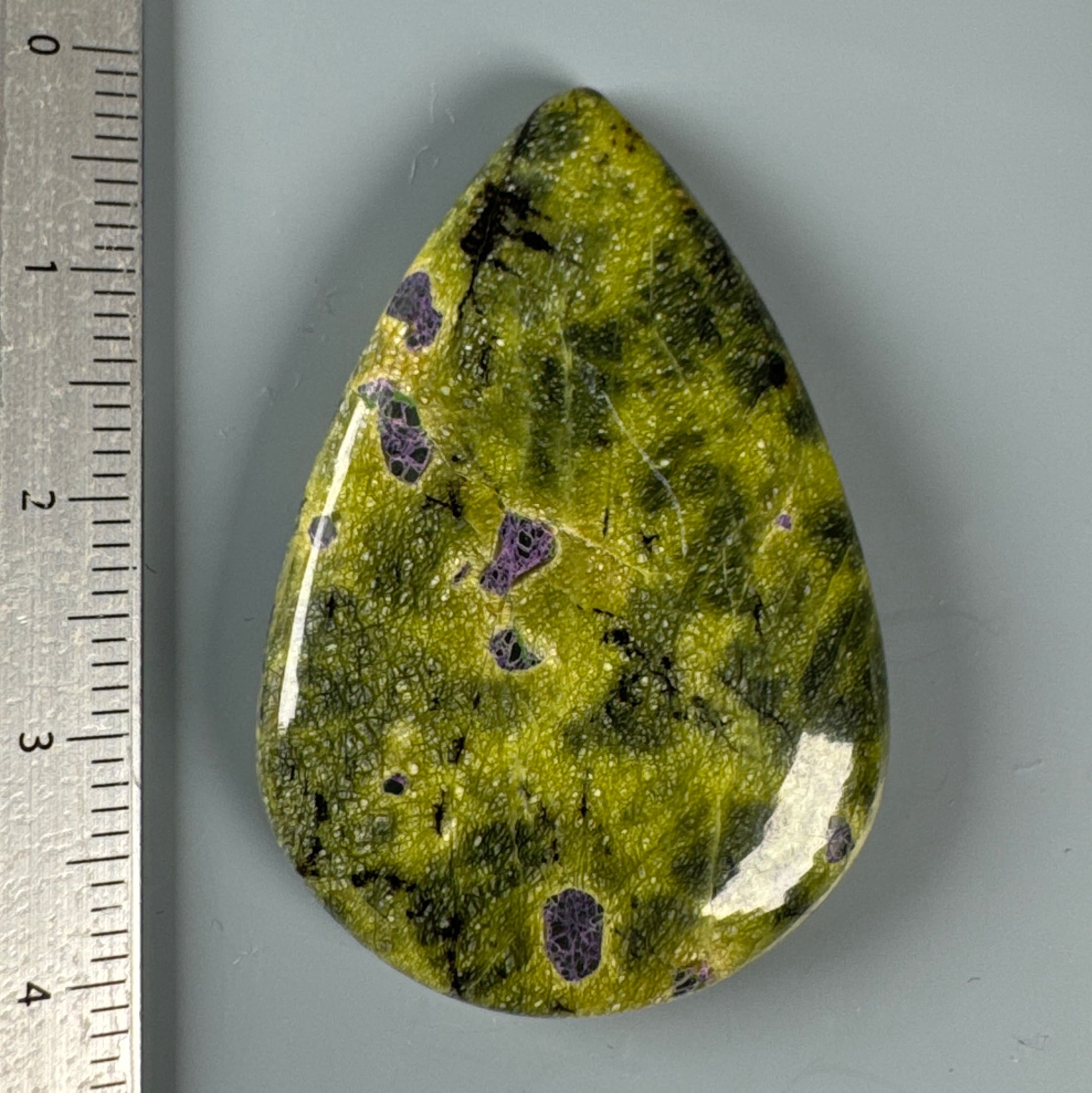 模様はまるでドラクエの荒野に紫の毒の沼があるように見える模様の天然石です。