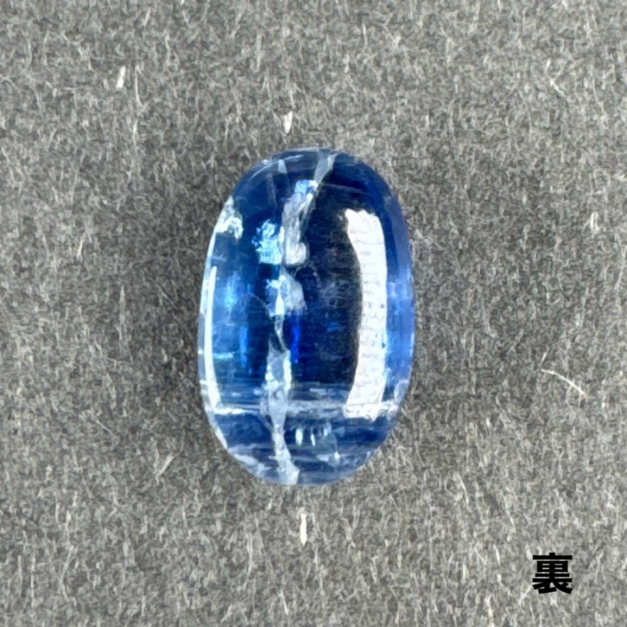 クラックとカヤナイト特有の金属的な輝きが見られます。