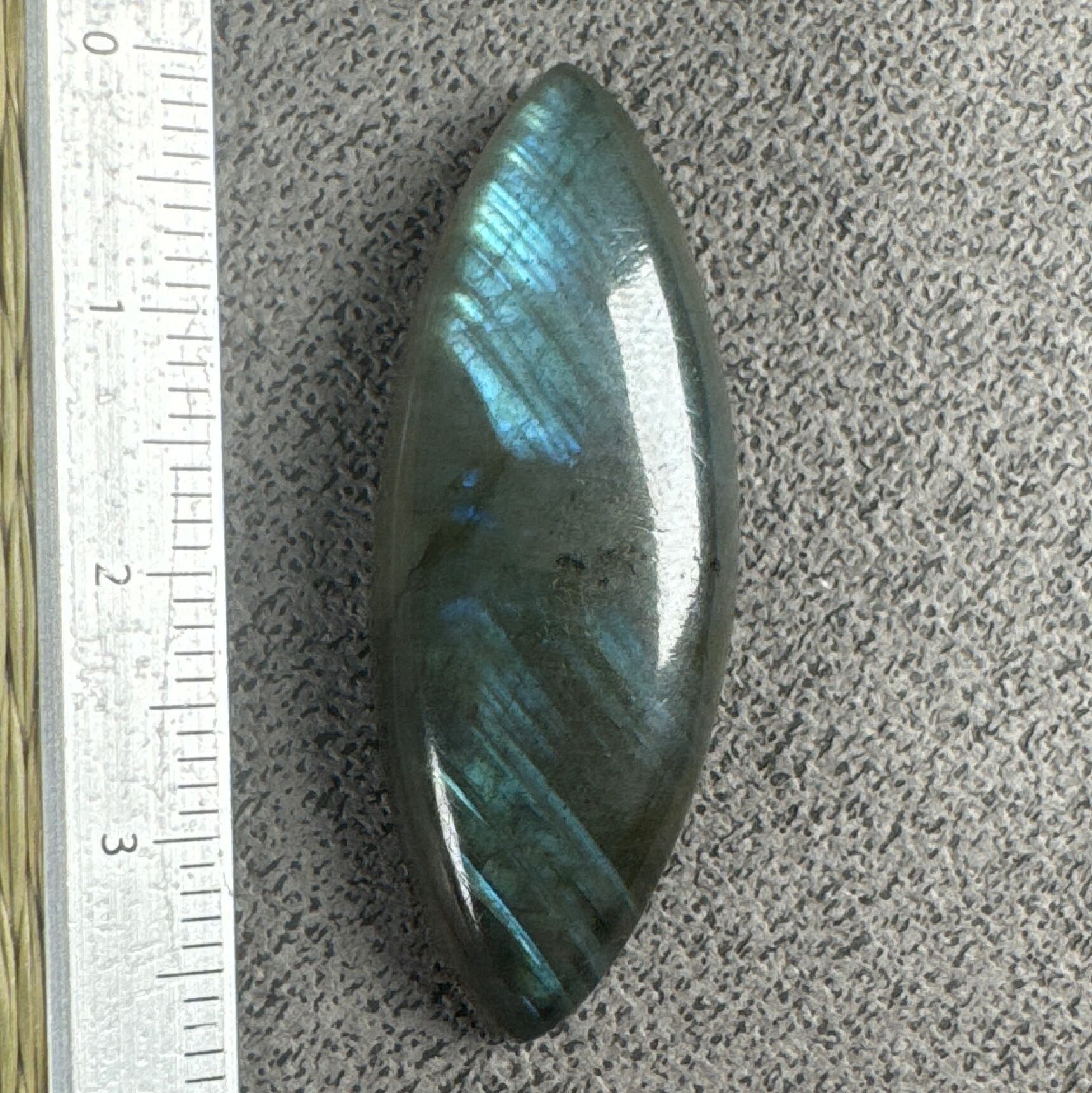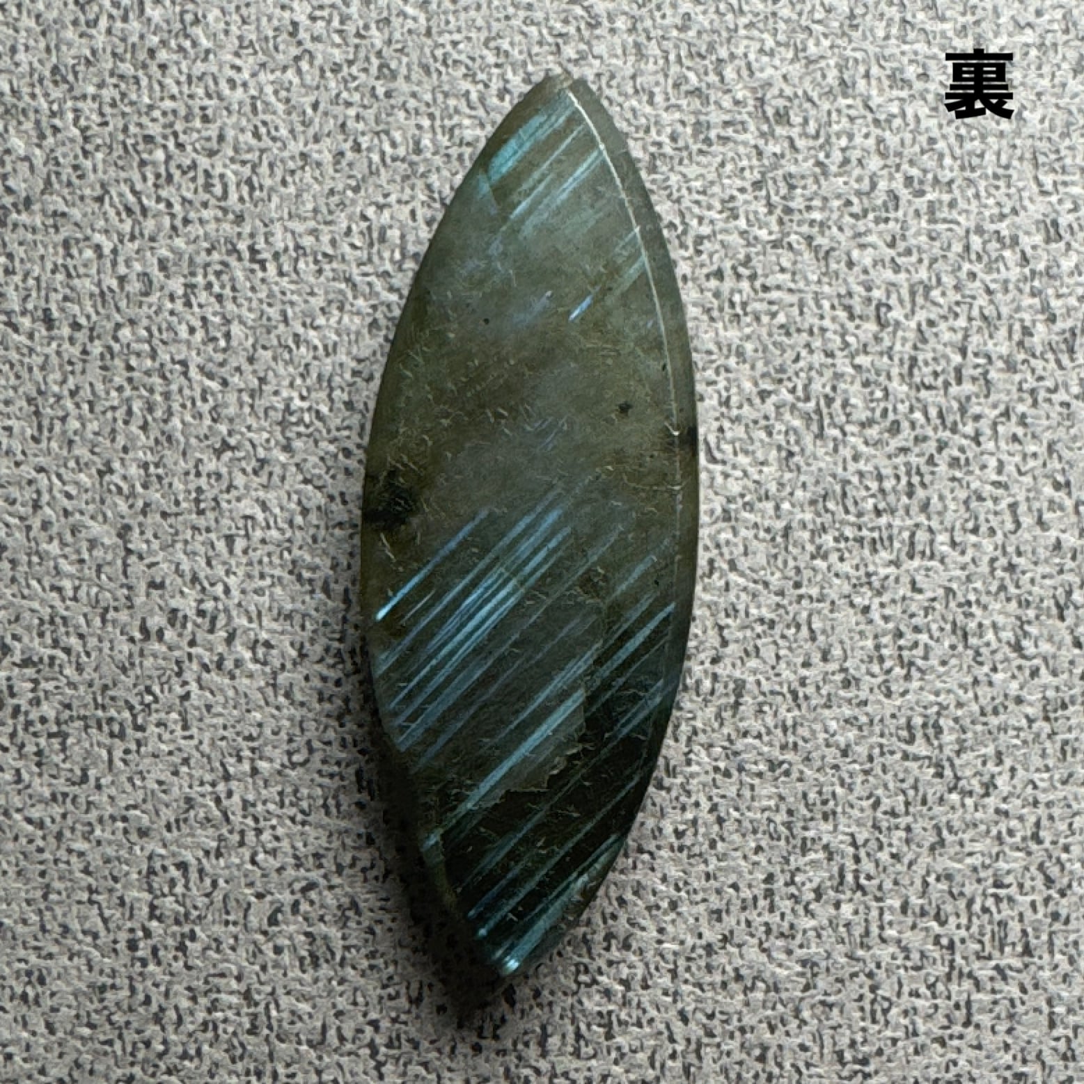 まばらな淡いブルーのシラーが見られるラブラドライト。