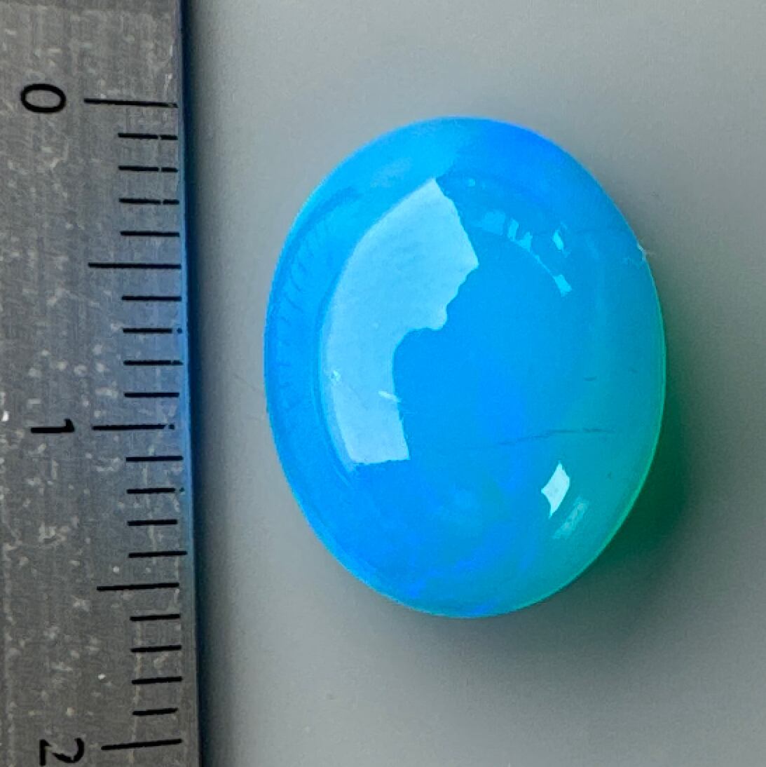 5Aクラスの鮮やかな遊色が見られる明るいブルーのオパール ルースです。