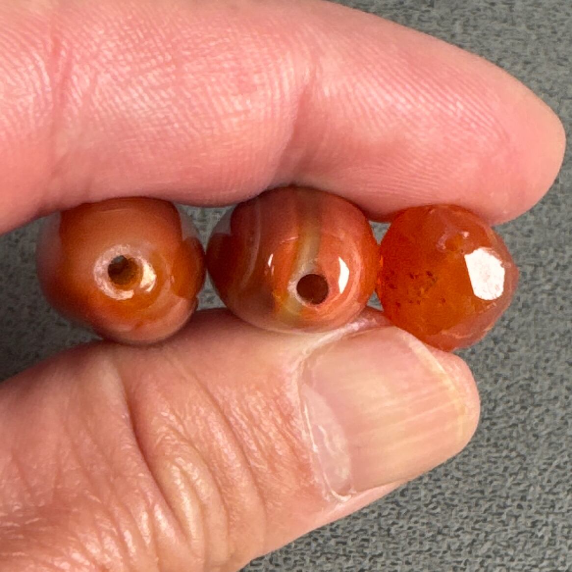 タンブルカットビーズはカーネリアンで、穴の大きさは小さめで、