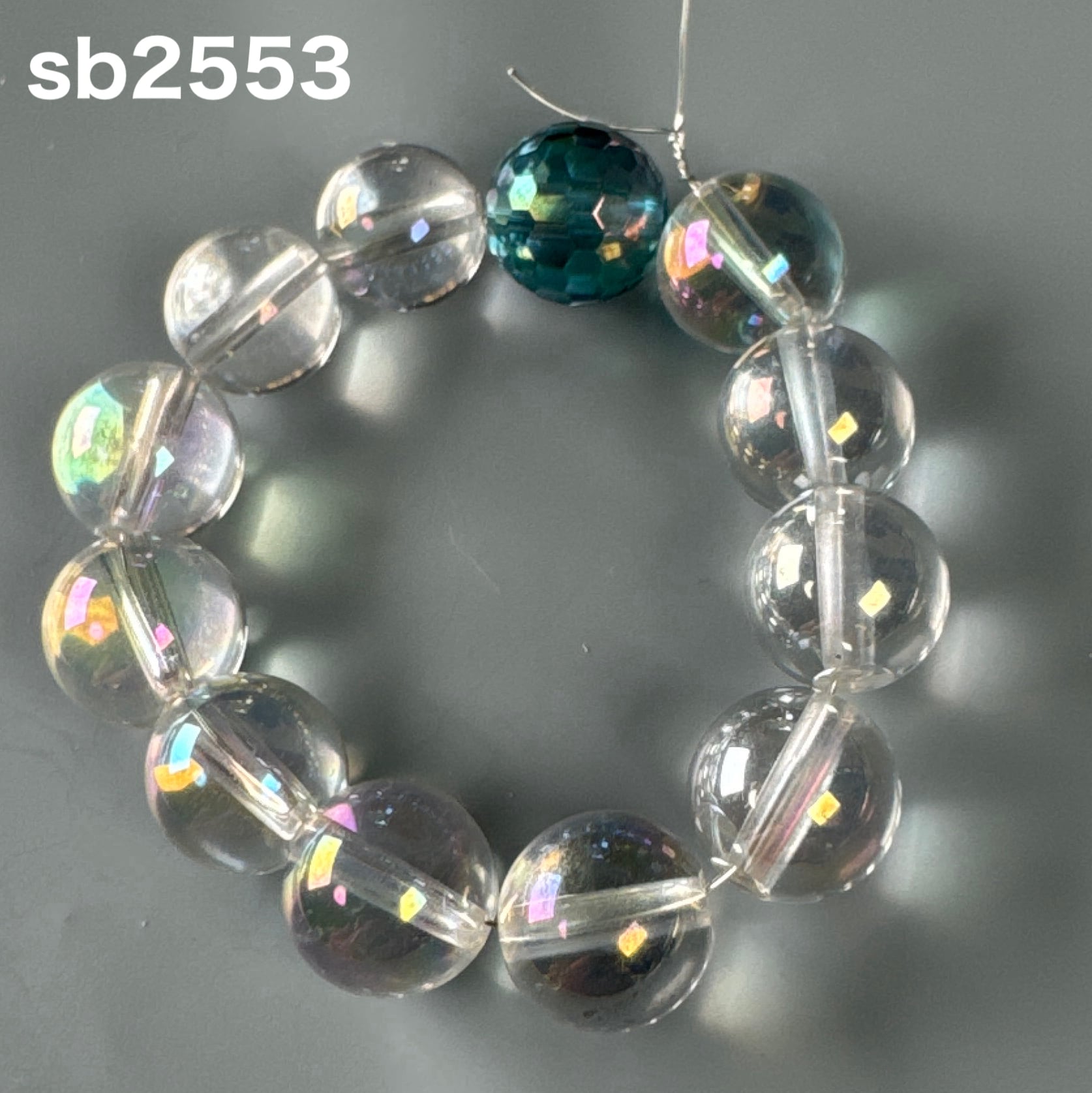 水晶ビーズに熱処理でテカテカとレインボーに輝く加工がされたビーズです。