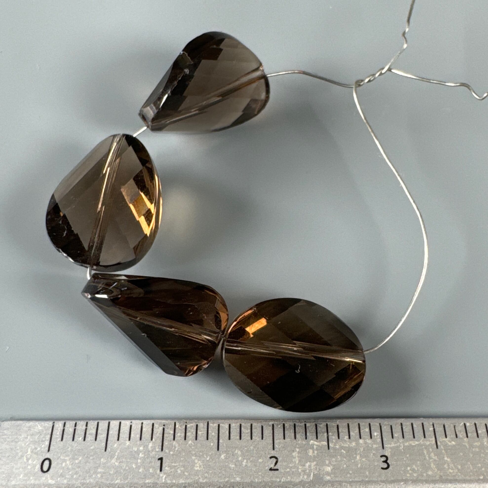 スモーキークォーツのツイストシェイプ、カットビーズ4個セットです。