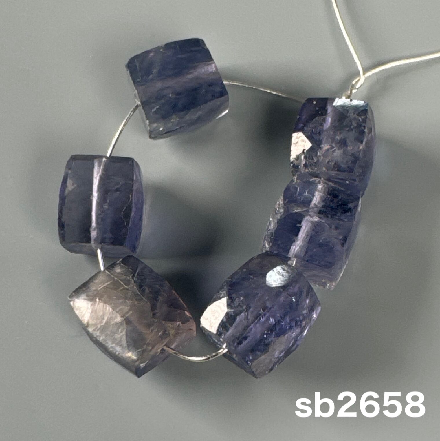 透過する品質の良いアイオライトのスクエア型ビーズ6個。