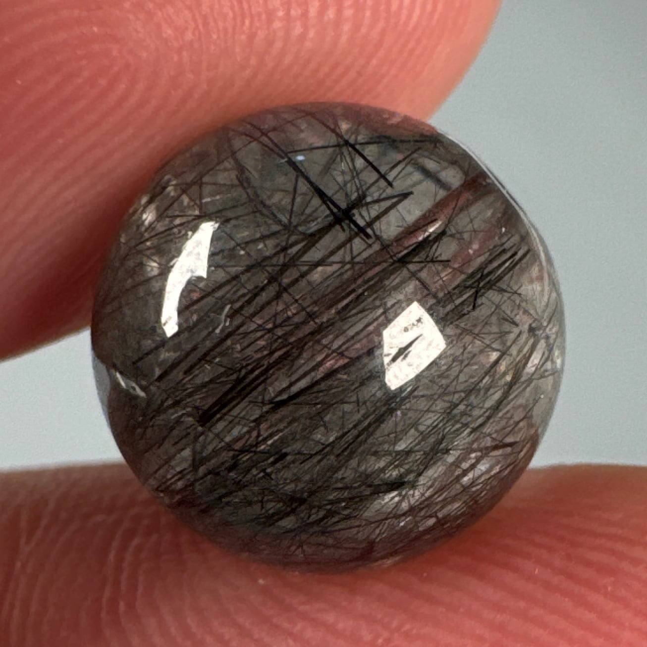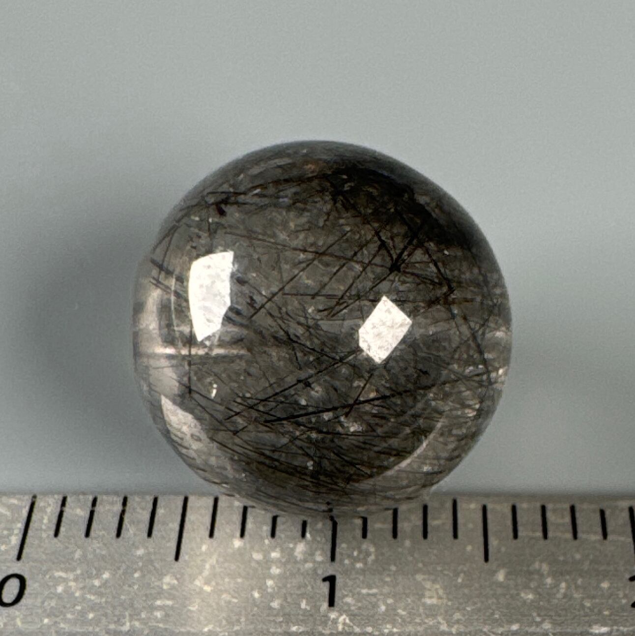 黒い針の見られるブラックトルマリンルチルのビーズ