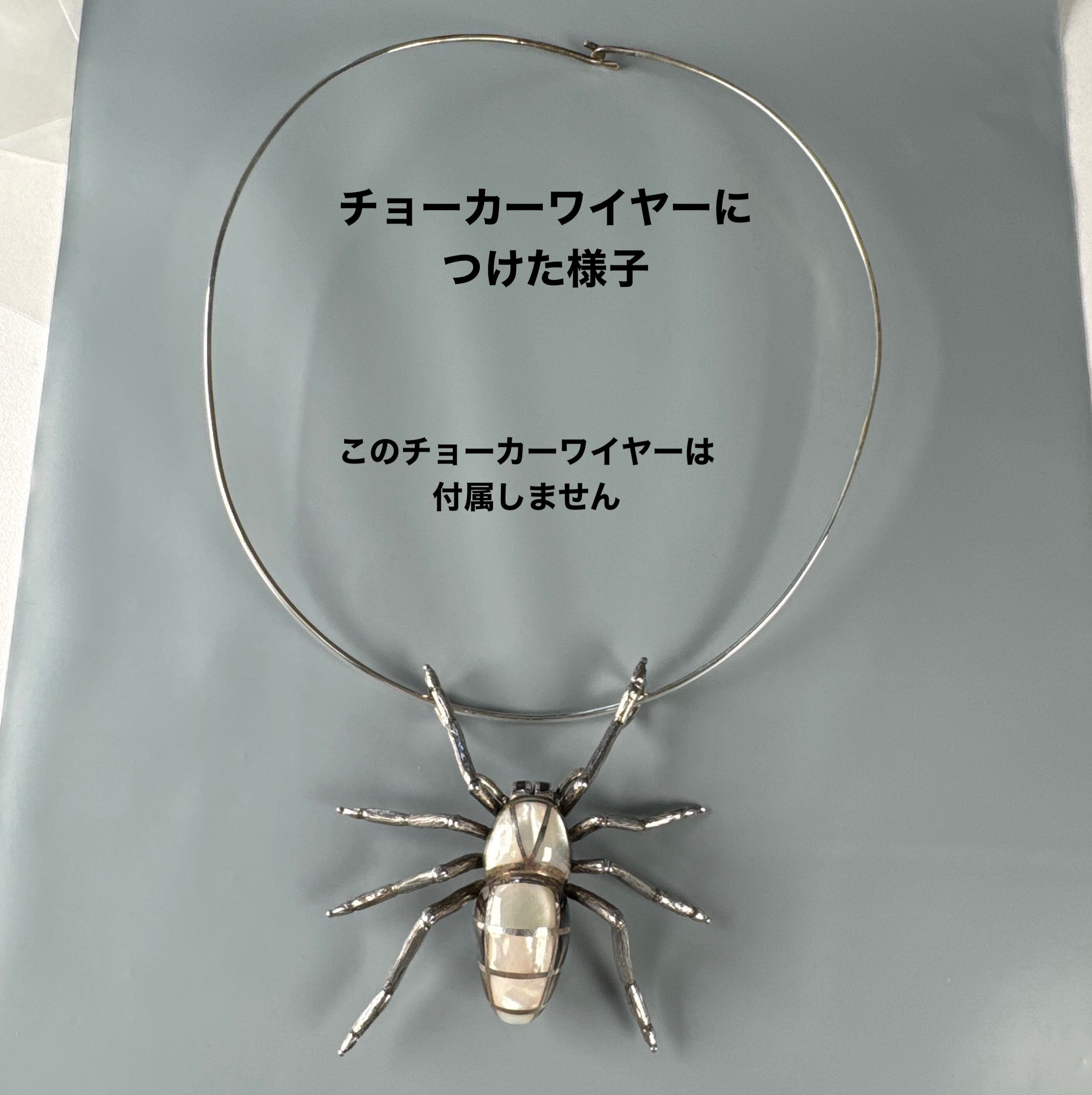 クモ型 シルバー925 白蝶貝装飾 ブローチ ペンダントトップ r13