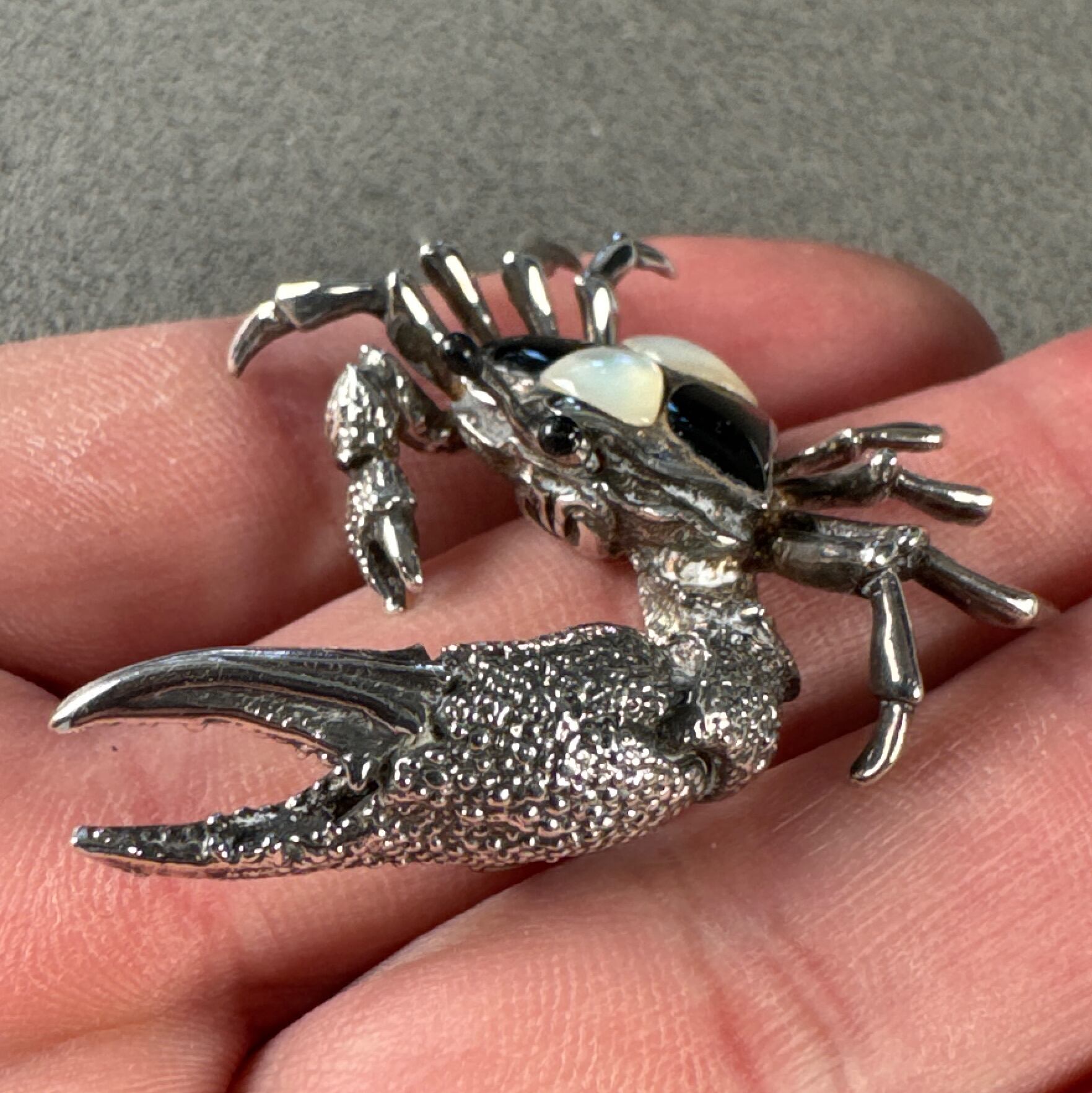 カニ型 シルバー925白蝶貝とオニキス装飾 ペンダントトップ r16
