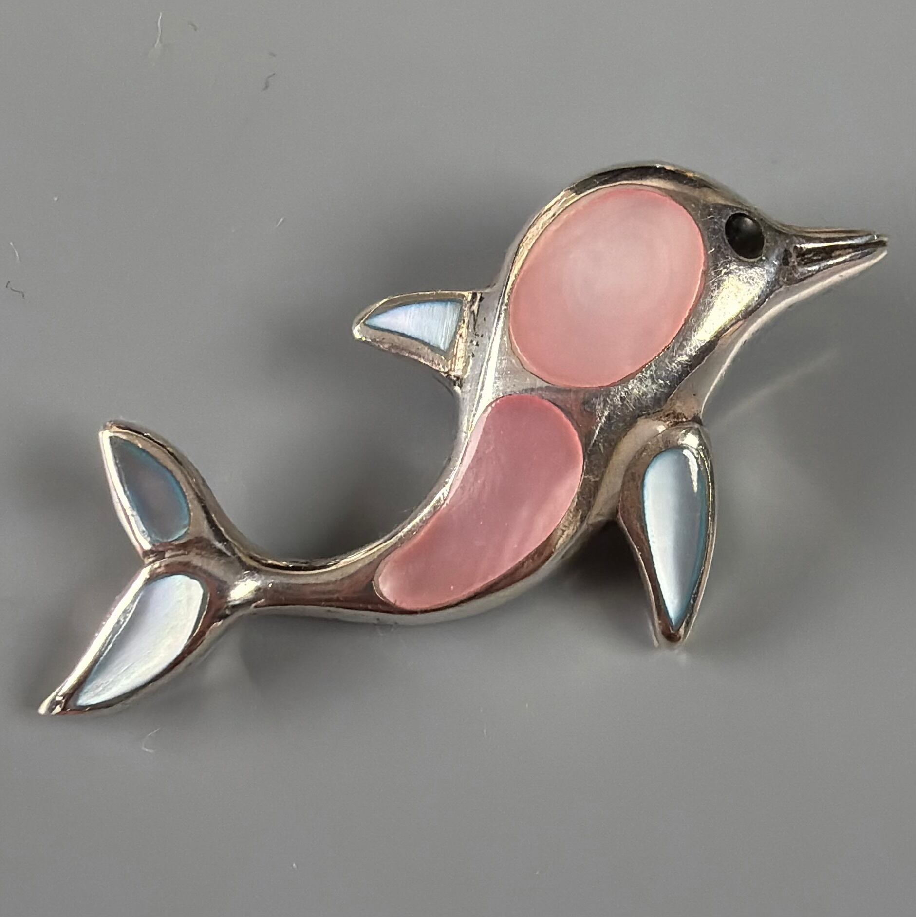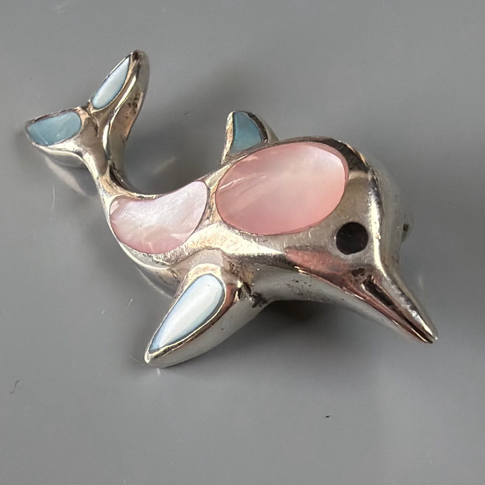 イルカモチーフ シルバー925 白蝶貝装飾 ペンダントトップ r54