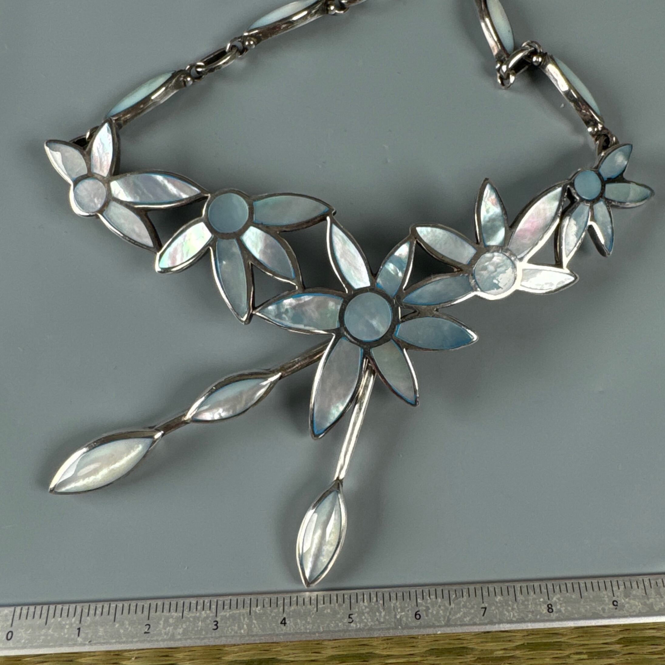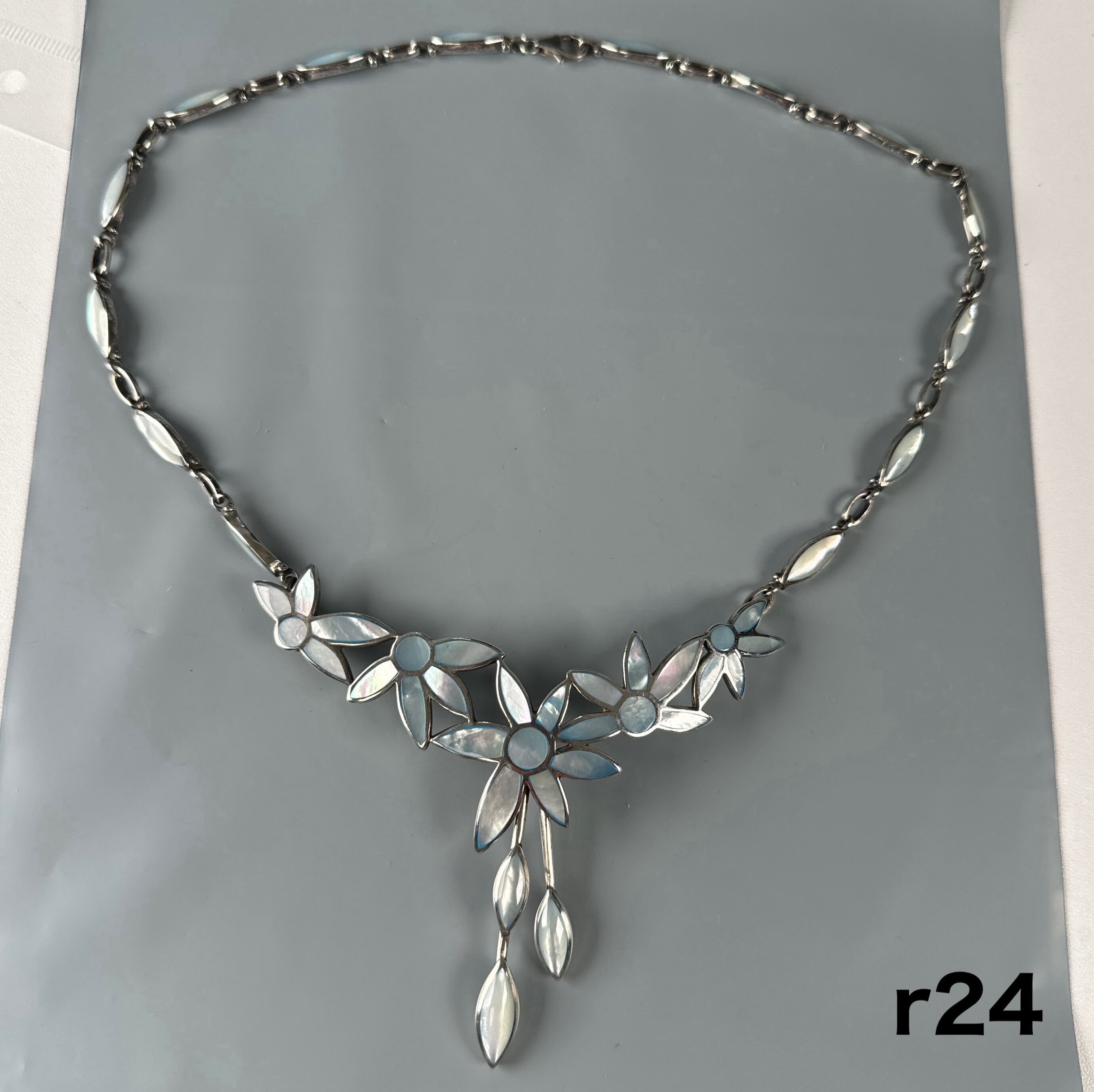 お花デザイン シルバー925 螺鈿装飾 ネックレス r24