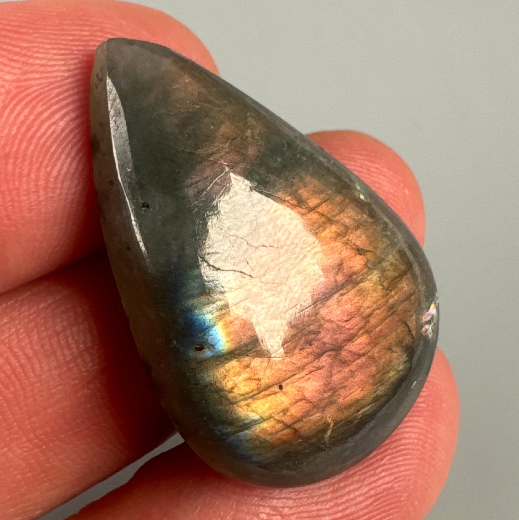 淡いピンクパープルのシラーが確認しやすい上質のラブラドライトです。