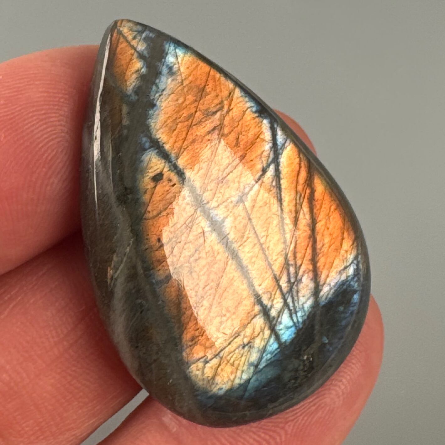 淡いピンクパープルのシラーが確認しやすい上質のラブラドライトです。