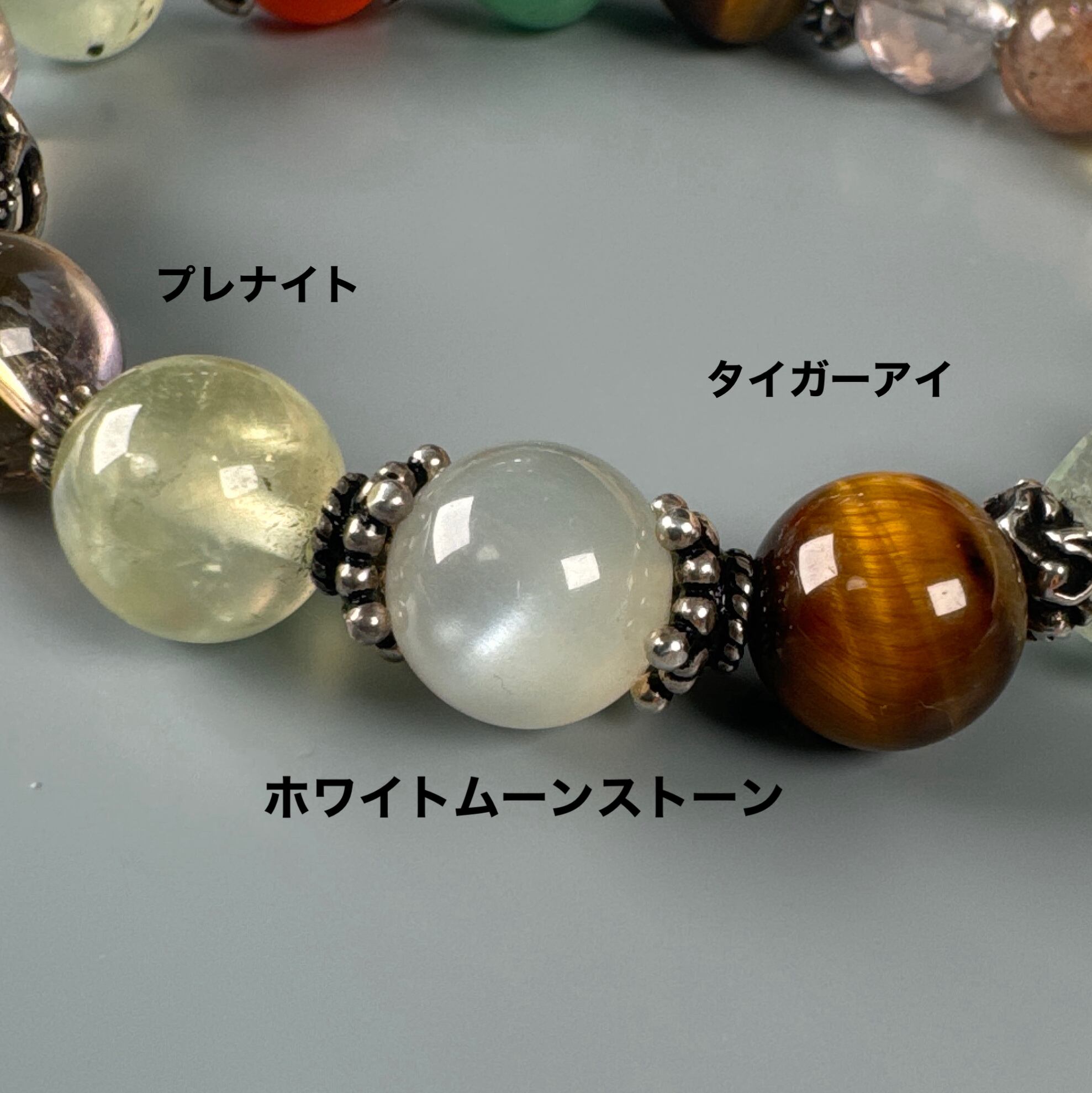 使用天然石:ホワイトムーンストーン、テクタイト、カーネリアン、