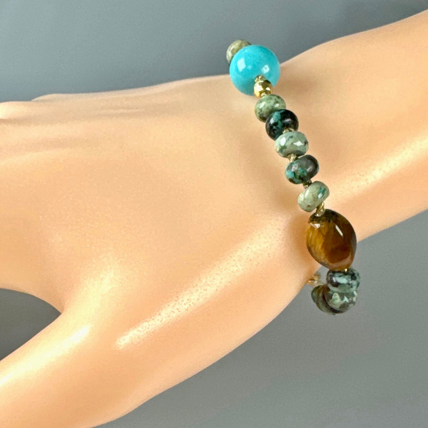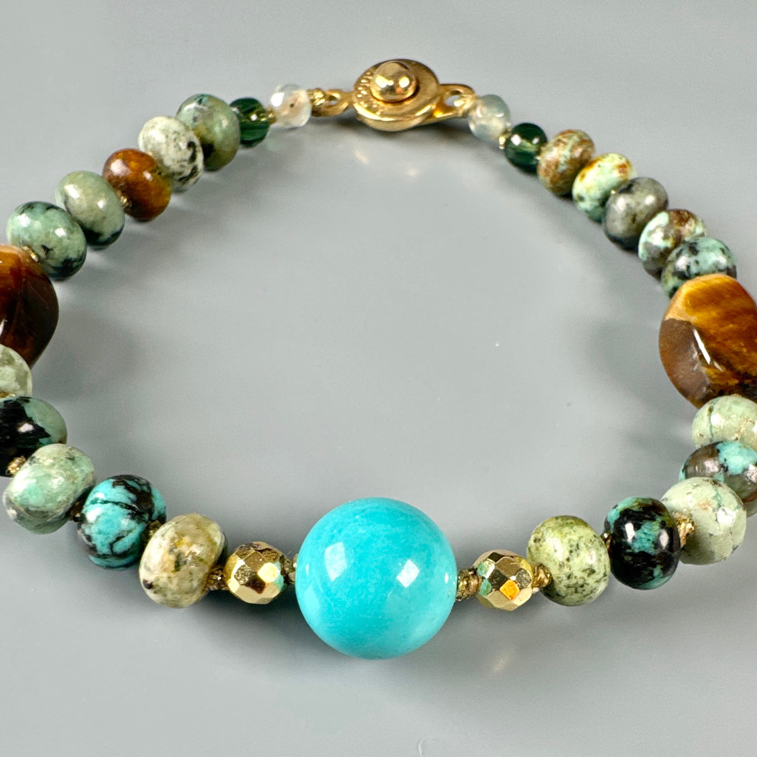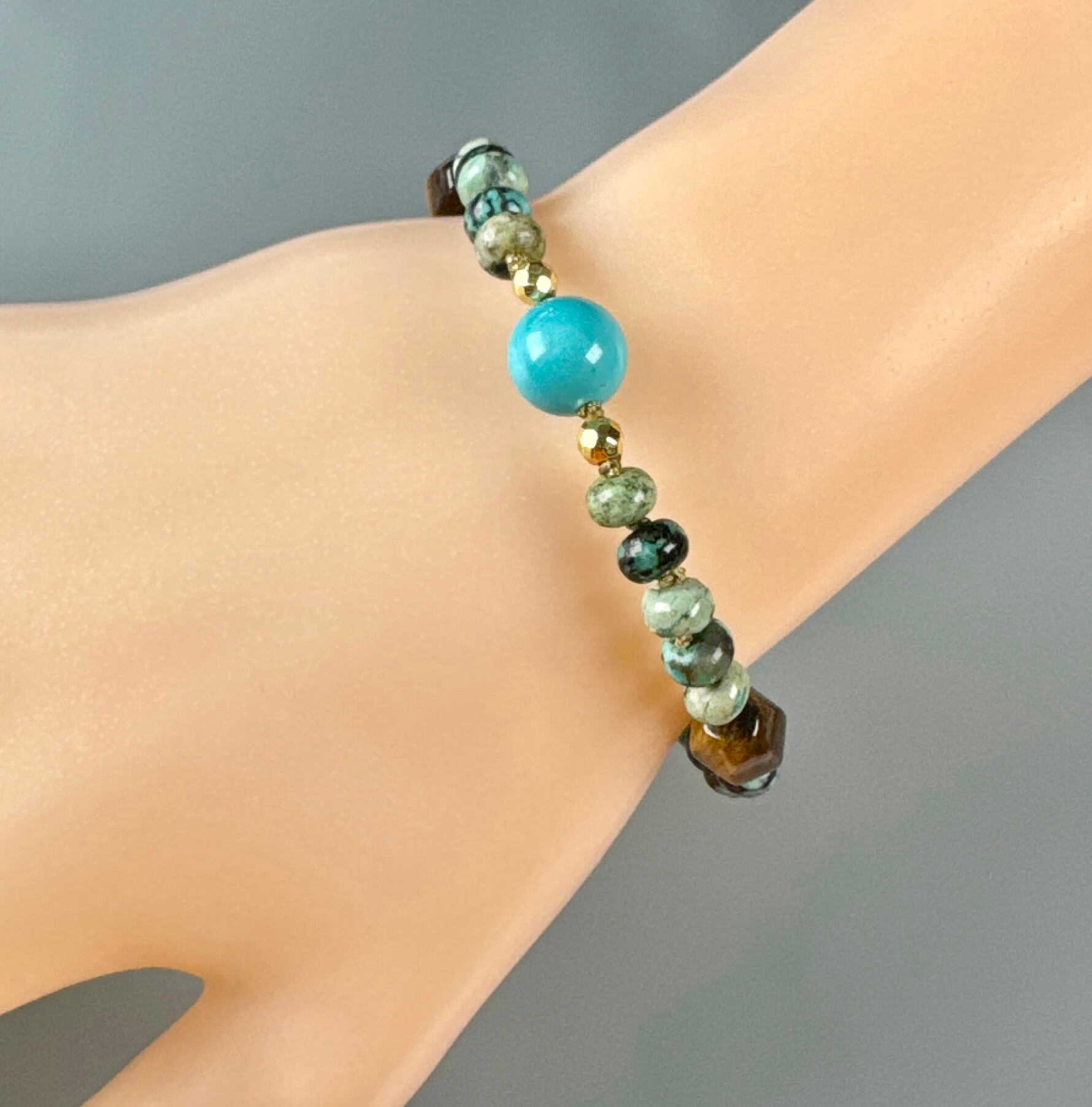 ターコイズ、タイガーアイ、アフリカンターコイズのブレスレットです。