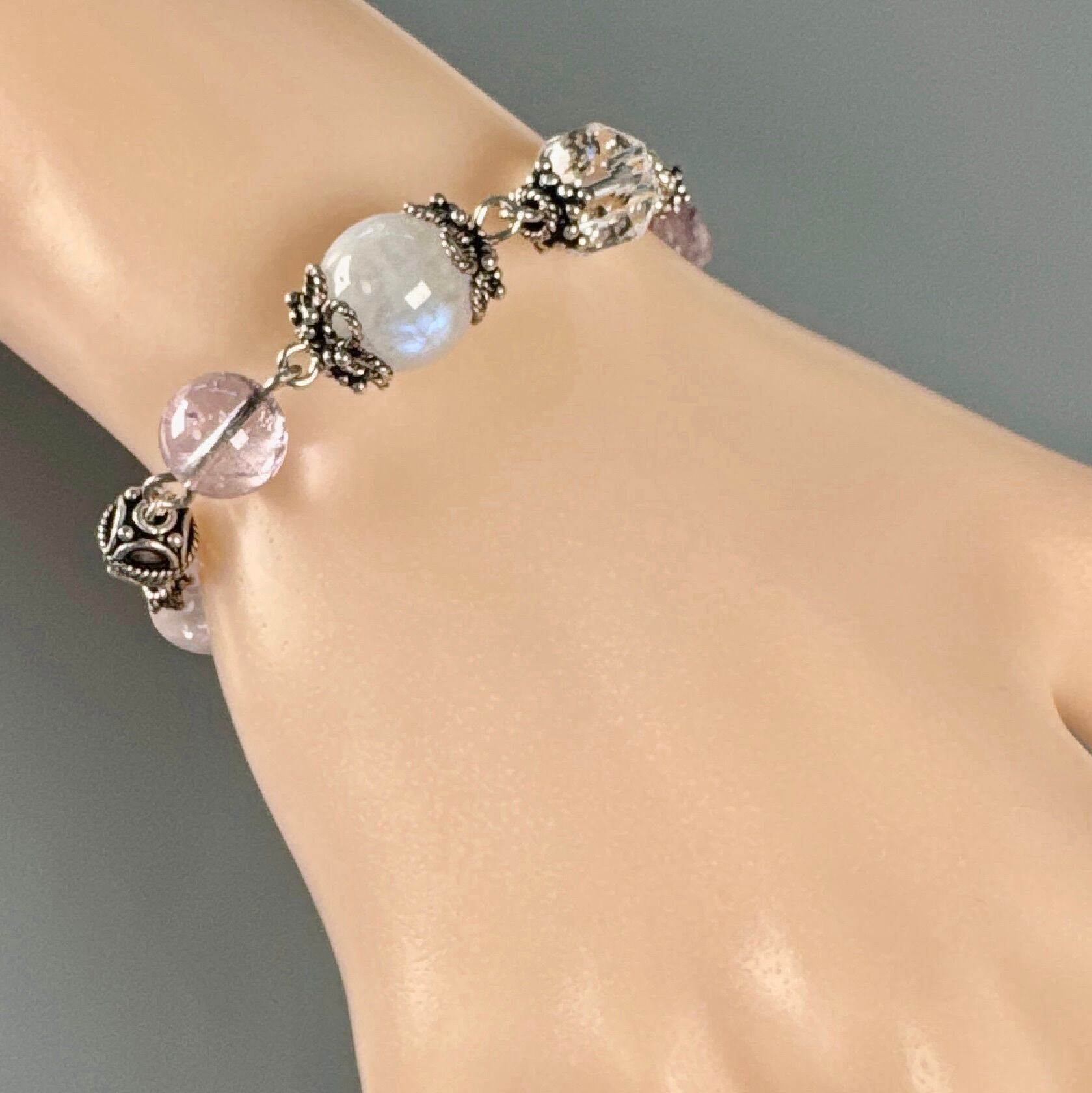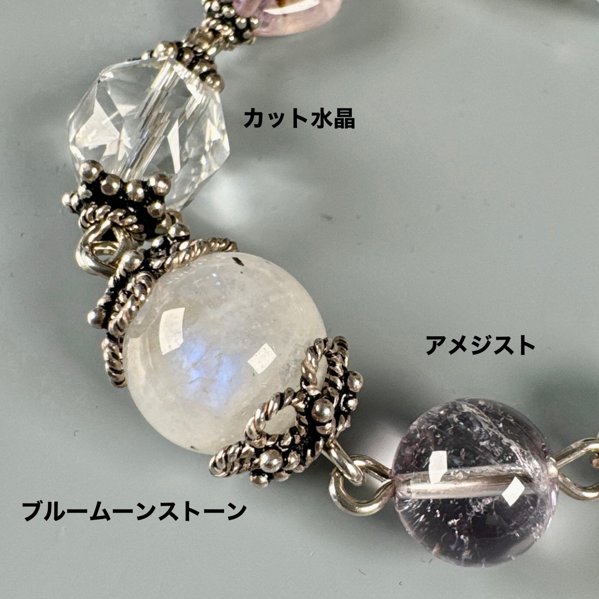 ブルームーンストーン アメジストエレスチャル シルバー925 マンテル ブレスレット DB160