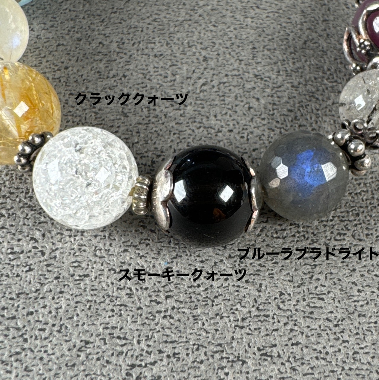 スモーキークォーツ、ブルーラブラドライト、ブルームーンストーン、ルチル、