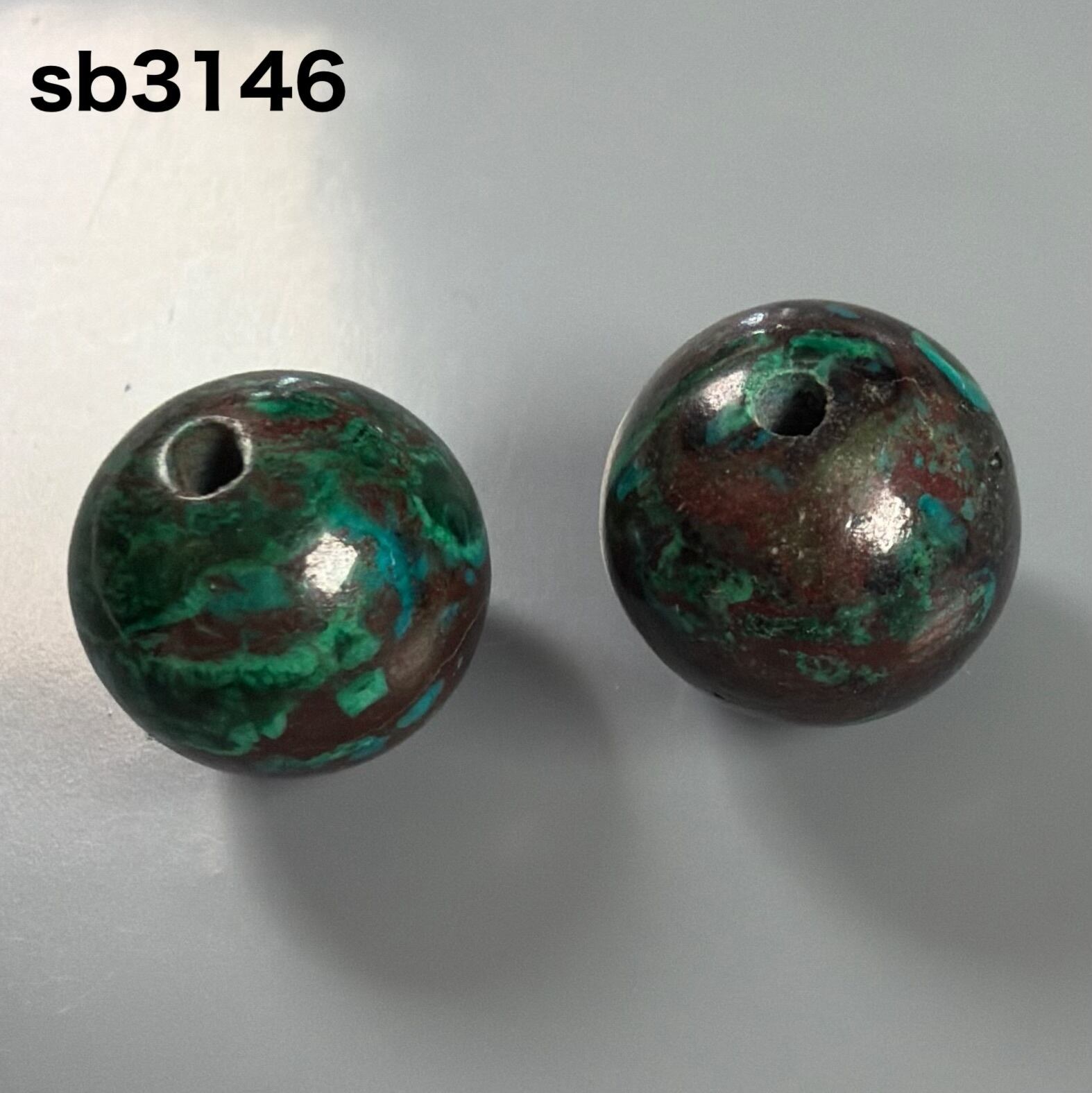 クリソコラ マラカイト 10ミリ ビーズ 2個 sb3146