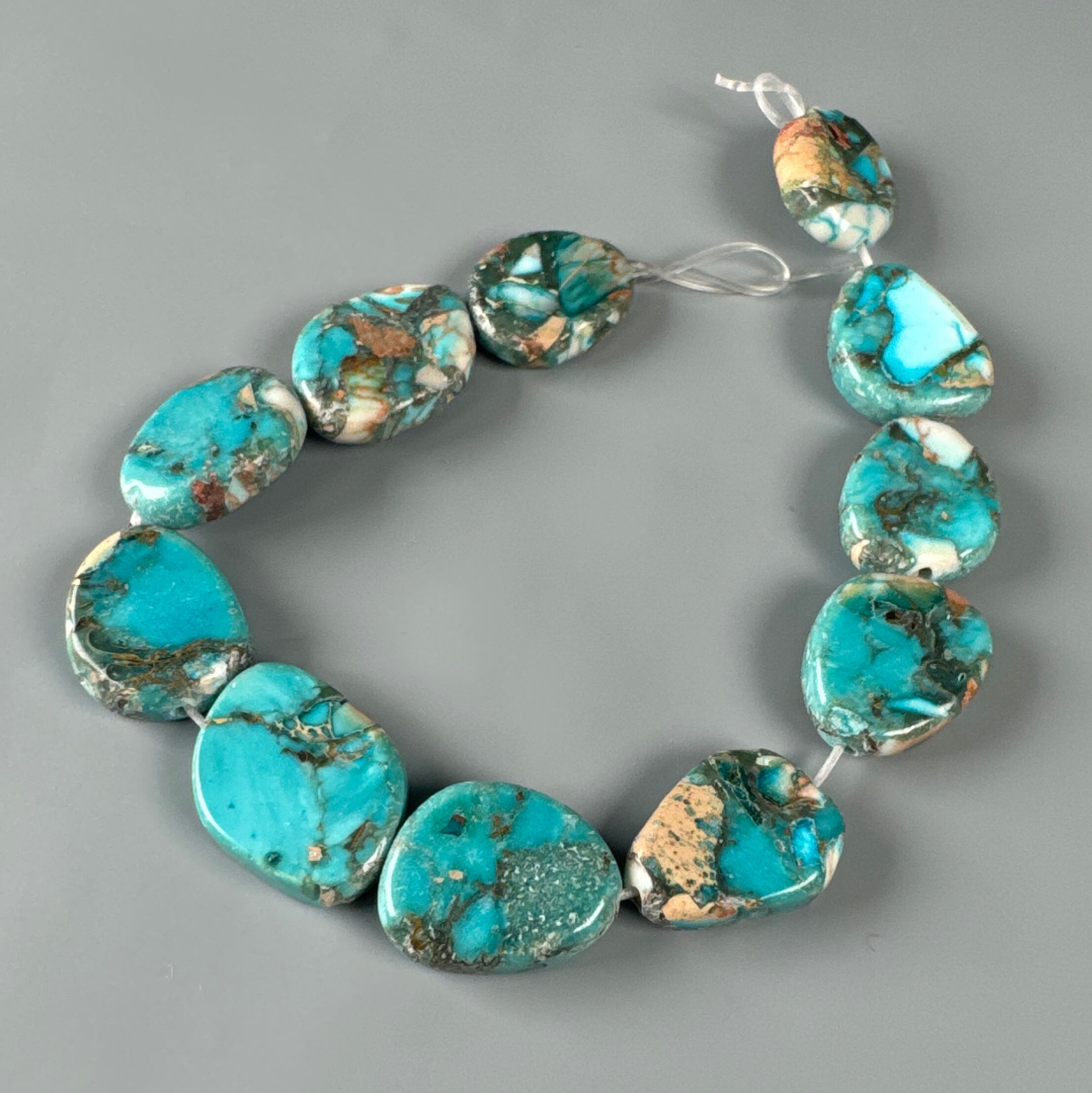 天然 インペリアルジャスパー タンブルフラット ビーズ 11個 sb2849