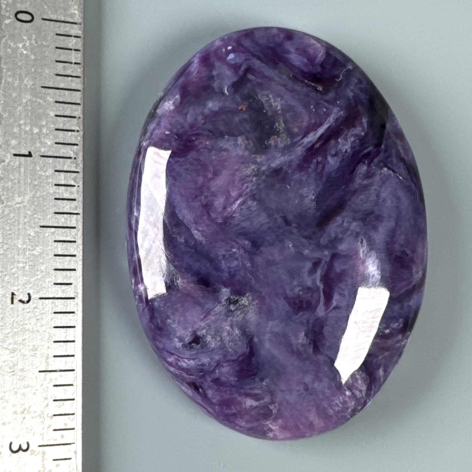 マーブル模様は見られない色合いが明るいチャロアイトになります。